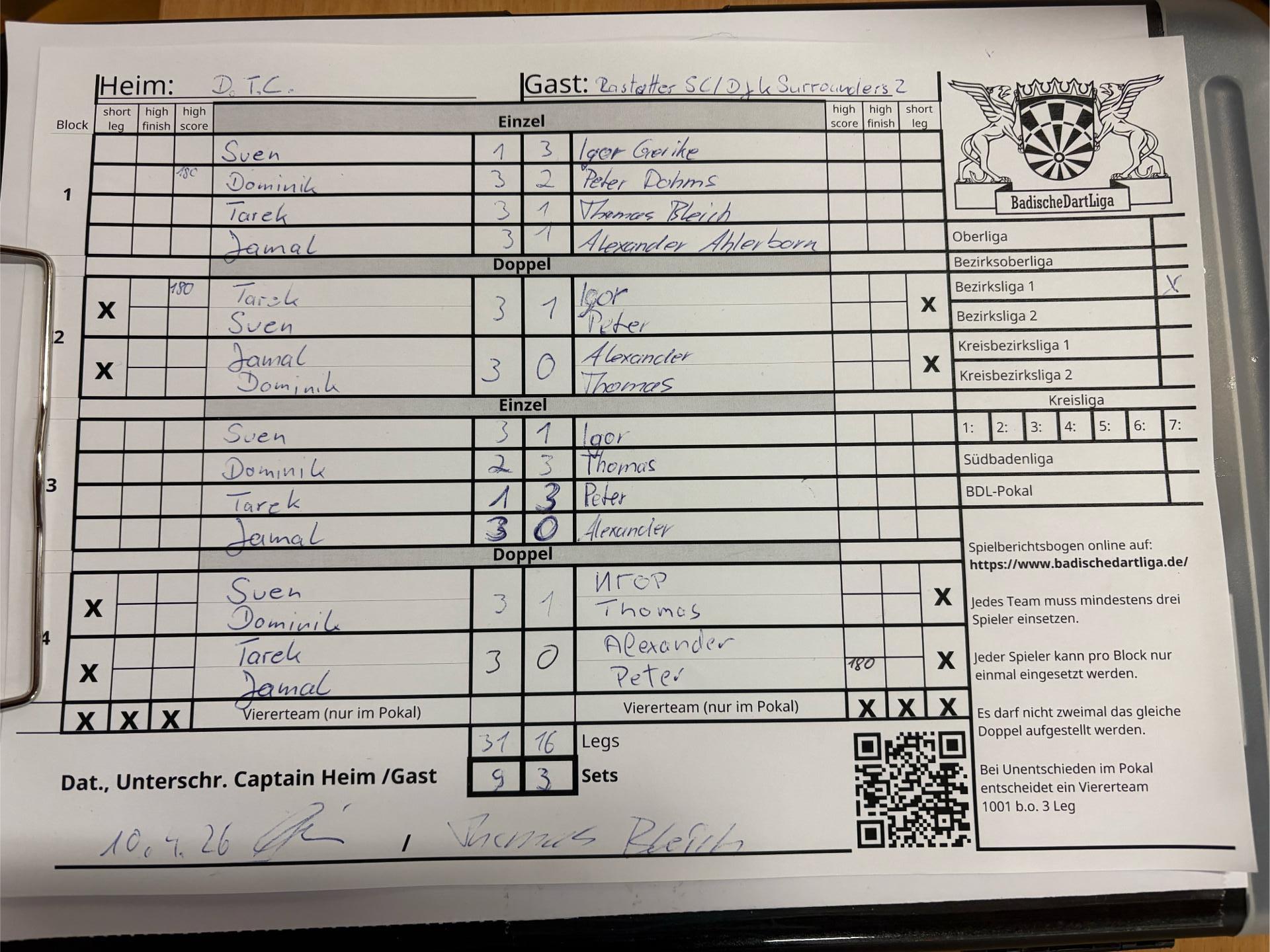 | Ergebnis: | 31 : 16 | - Legs | ||||||