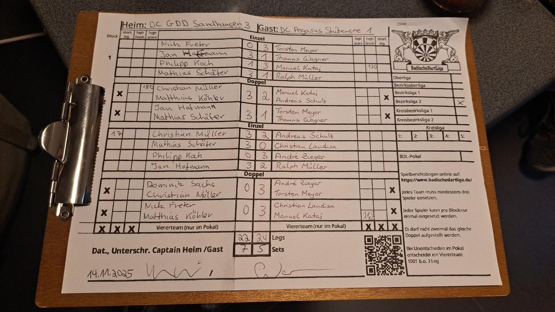 | Ergebnis: | 22 : 24 | - Legs | ||||||