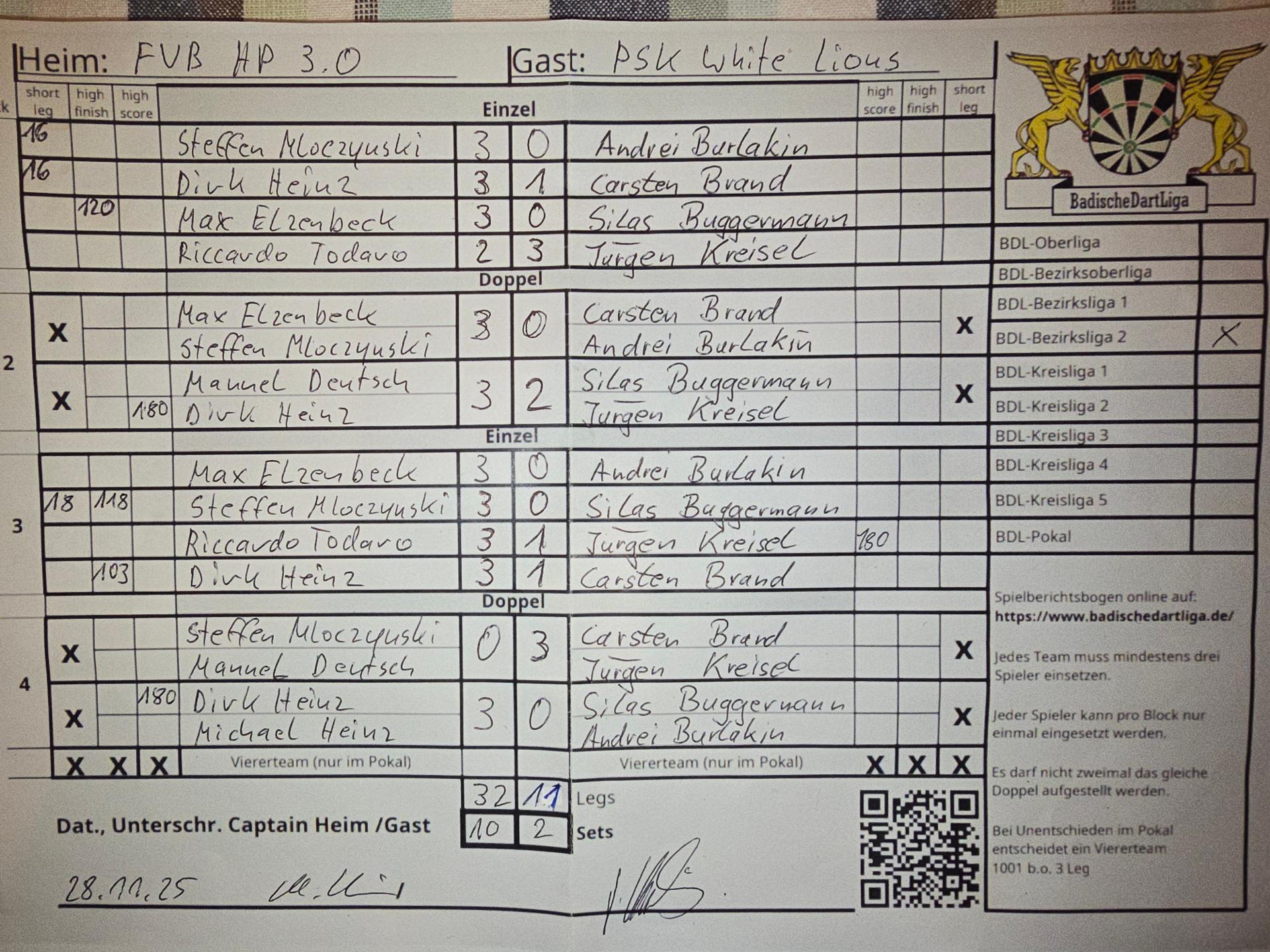 | Ergebnis: | 32 : 11 | - Legs | ||||||