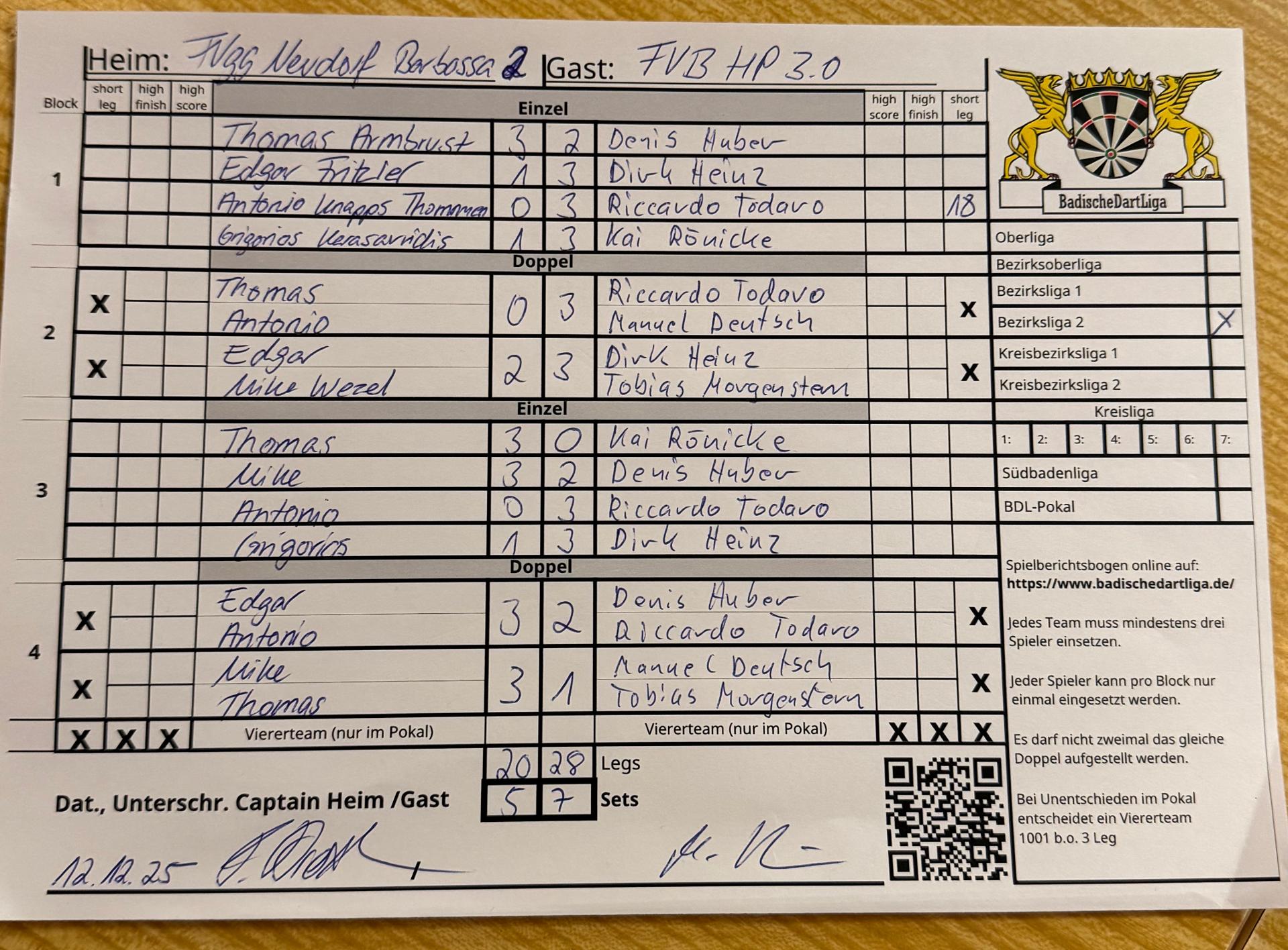 | Ergebnis: | 20 : 28 | - Legs | ||||||