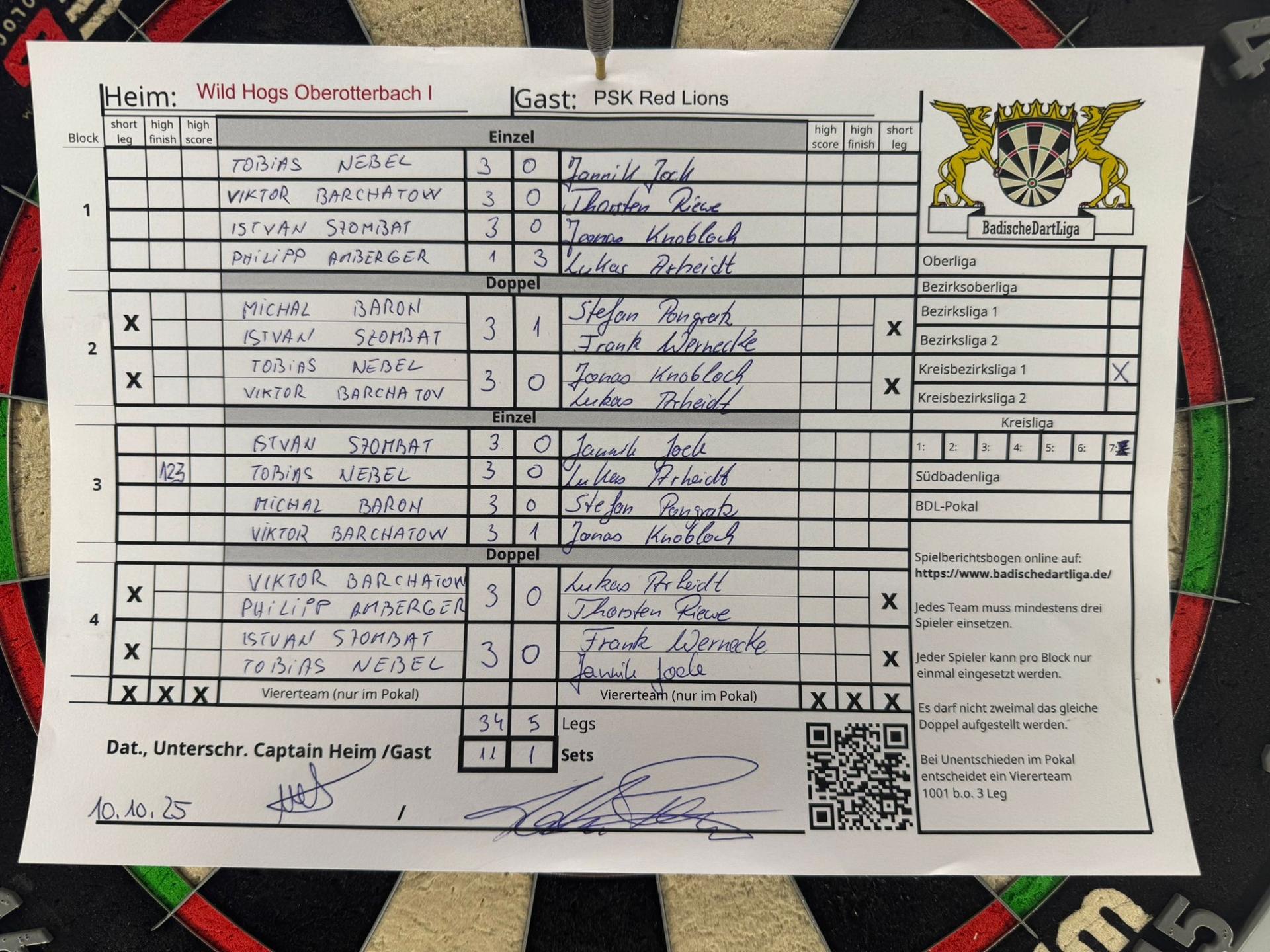 | Ergebnis: | 34 : 5 | - Legs | ||||||