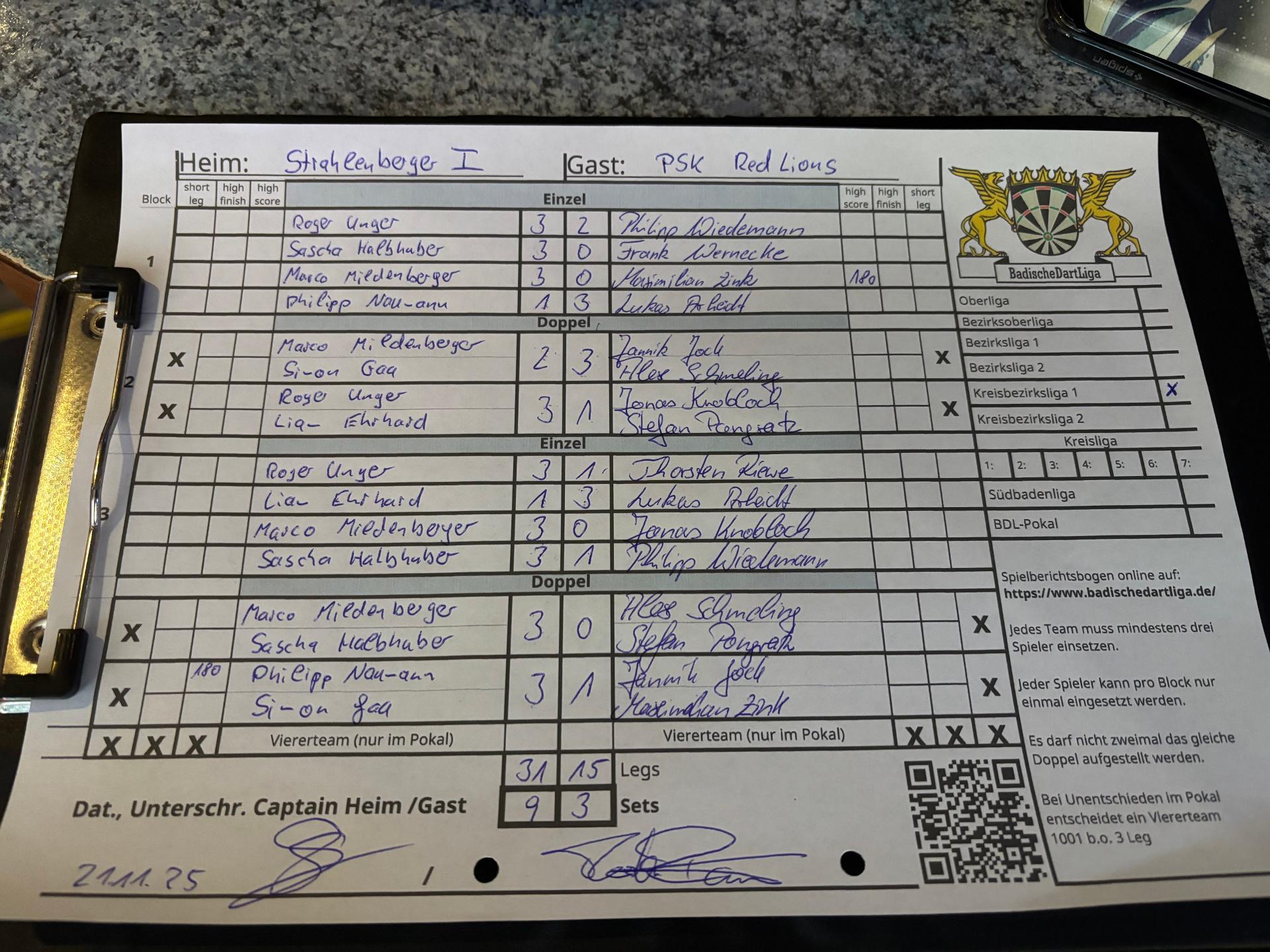 | Ergebnis: | 31 : 15 | - Legs | ||||||