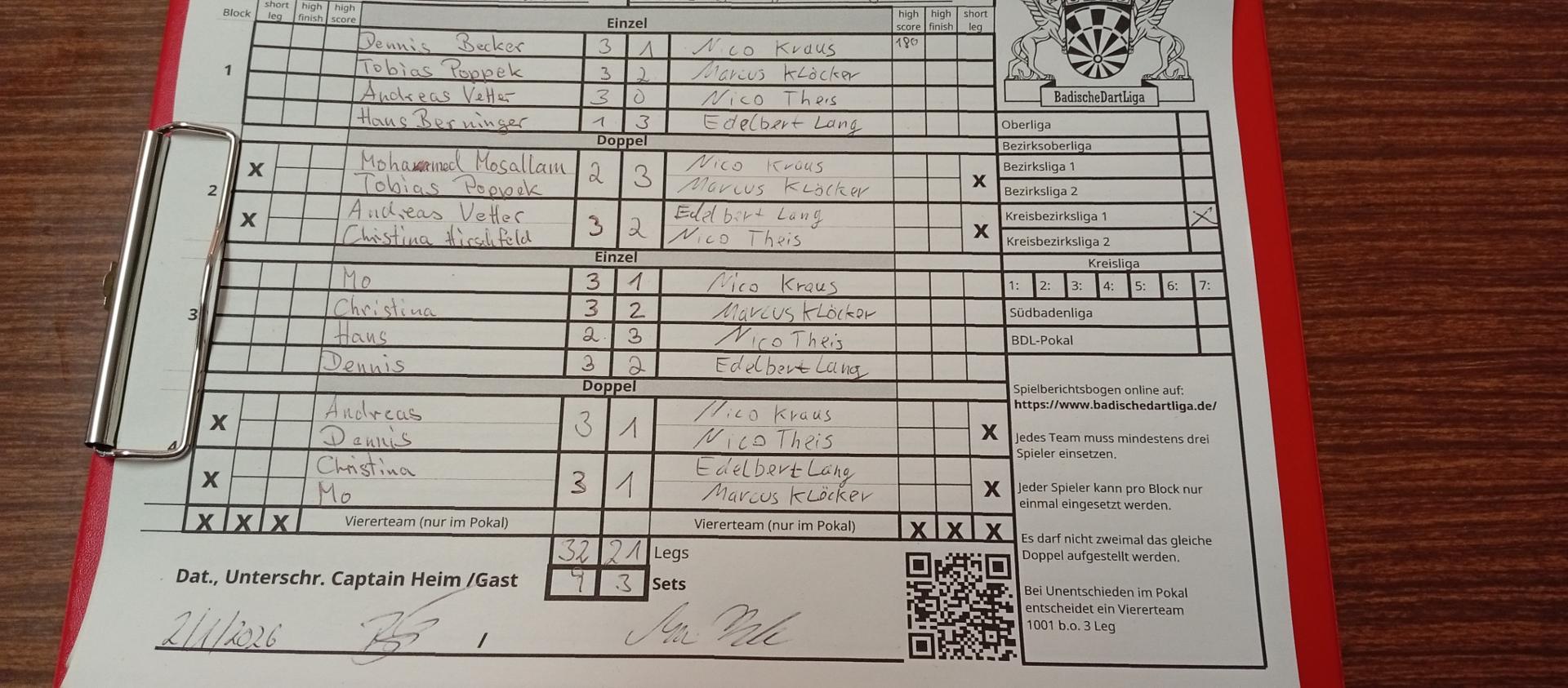 | Ergebnis: | 32 : 21 | - Legs | ||||||