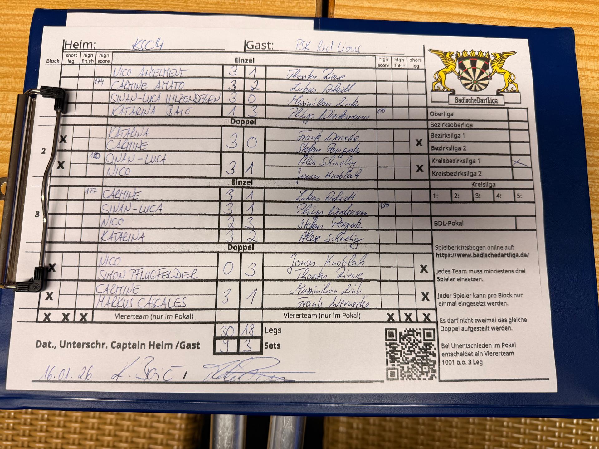 | Ergebnis: | 30 : 18 | - Legs | ||||||
