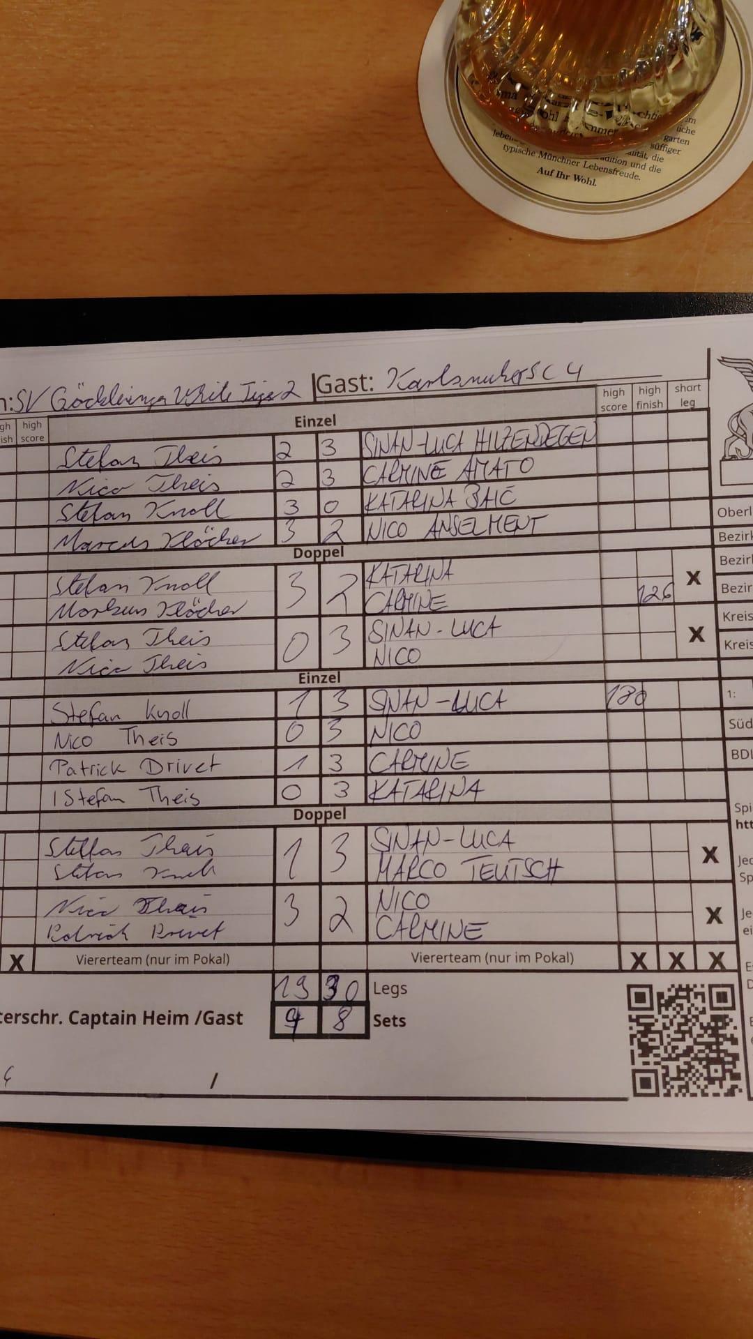 | Ergebnis: | 19 : 30 | - Legs | ||||||