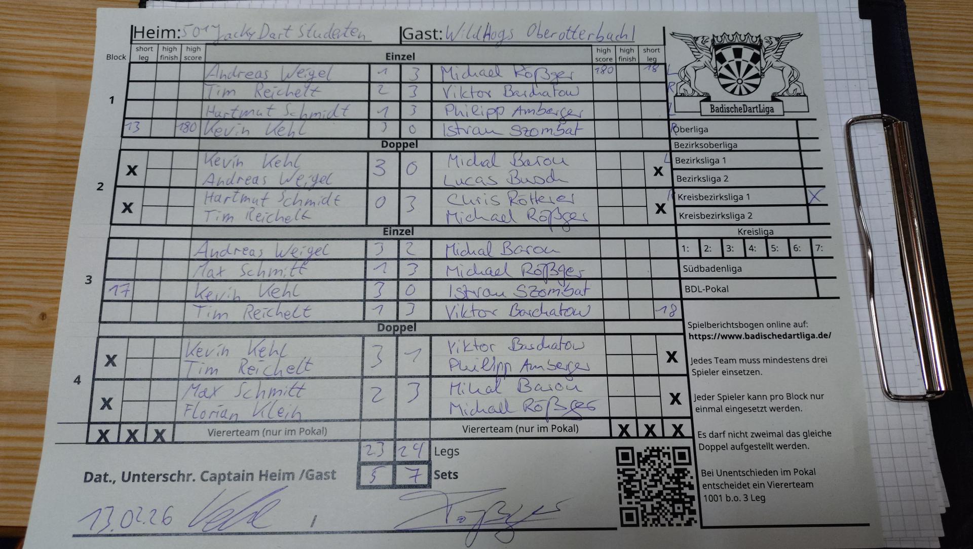 | HEIM: | 501 Jacky Darts Studenten | GAST: | Wild Hogs Oberotterbach I | |||||
