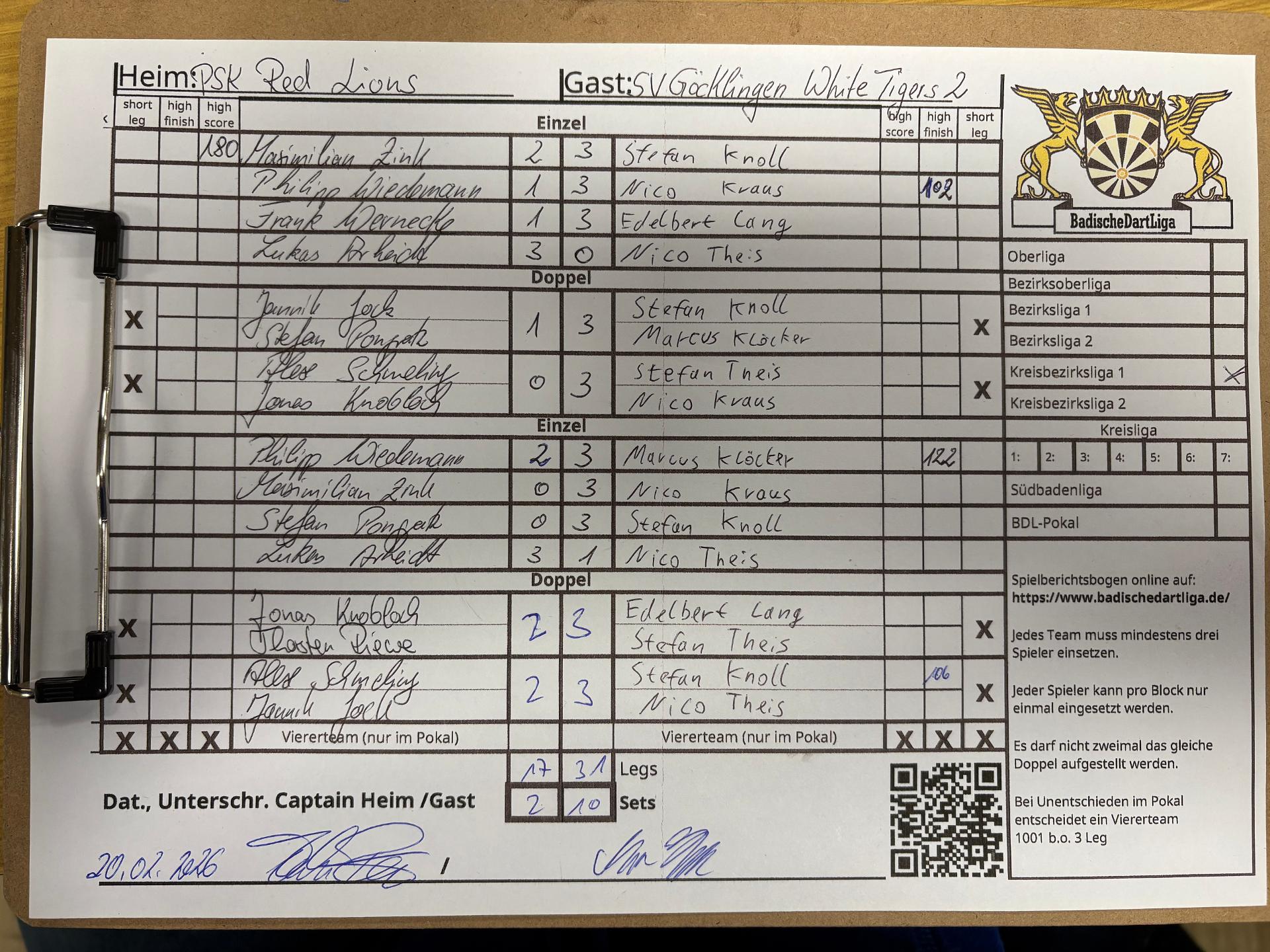 | HEIM: | PSK Red Lions | GAST: | SV Göcklingen White Tigers 2 | |||||