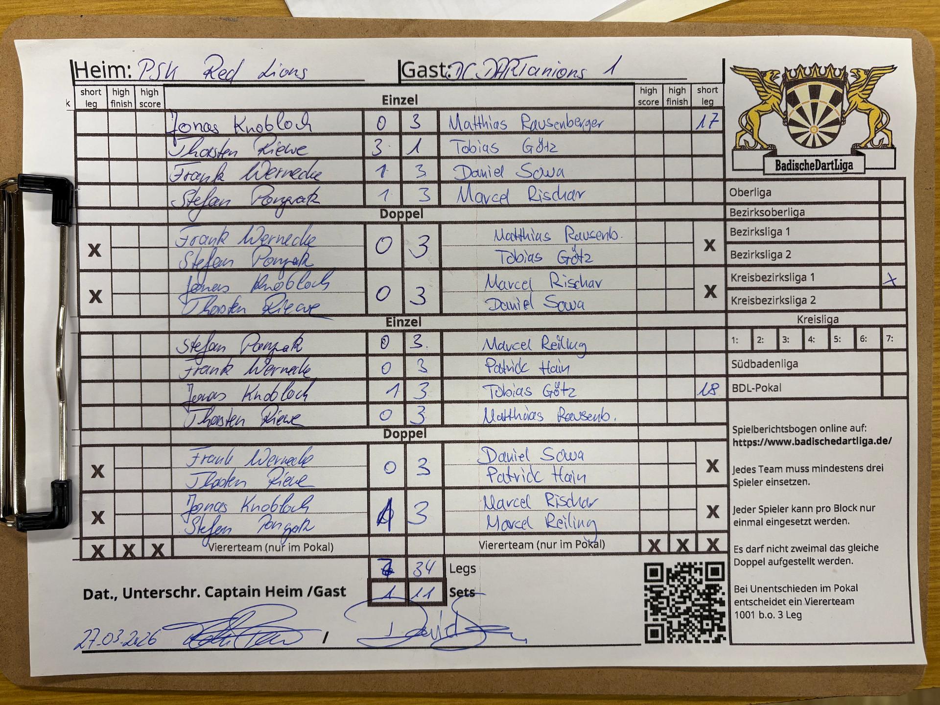 | HEIM: | PSK Red Lions | GAST: | DC DARTanions 1 | |||||