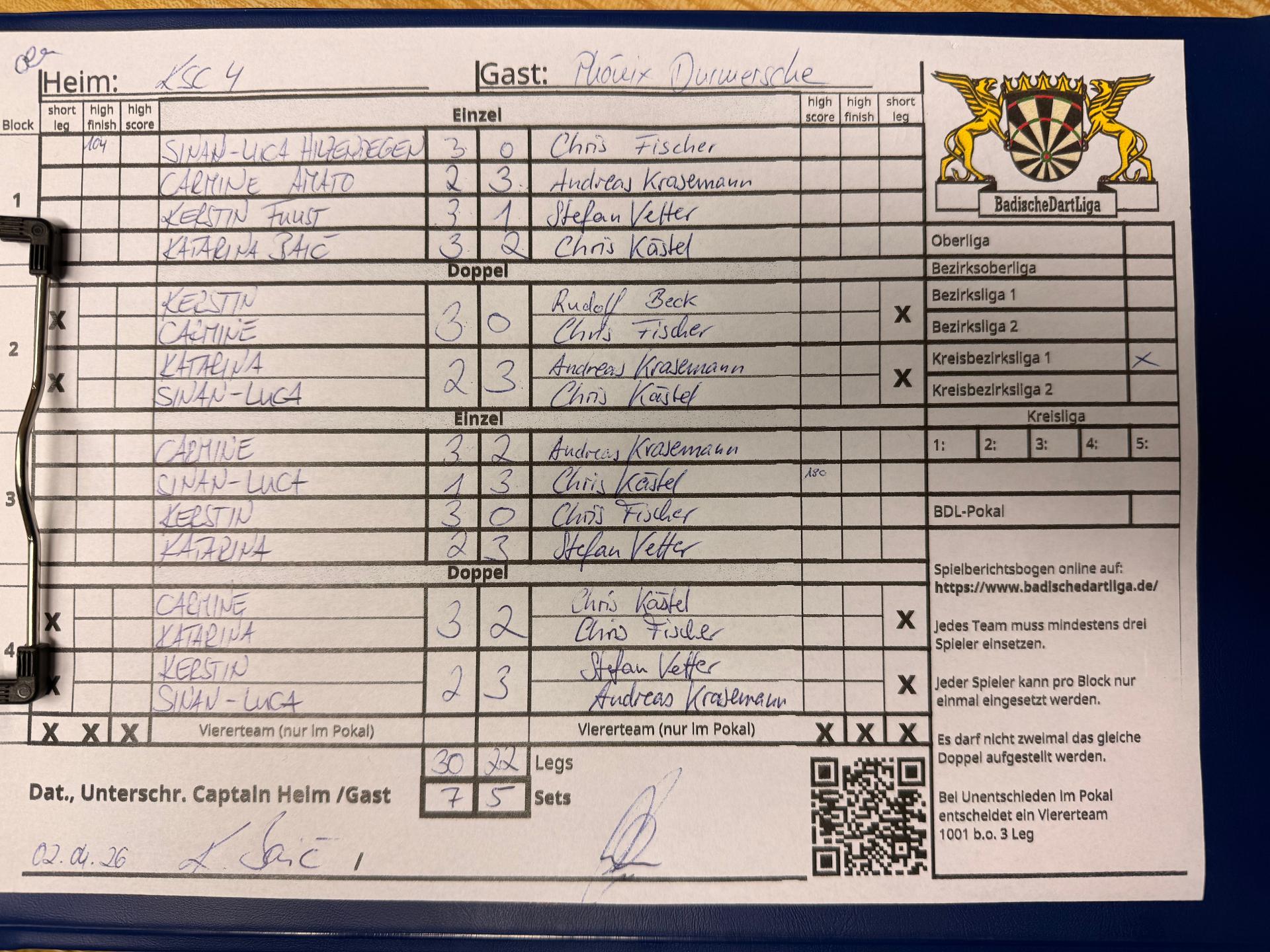 | Ergebnis: | 30 : 22 | - Legs | ||||||