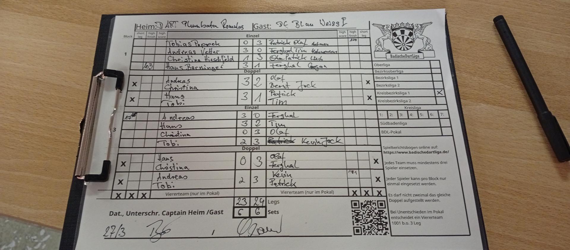 | Ergebnis: | 23 : 24 | - Legs | ||||||