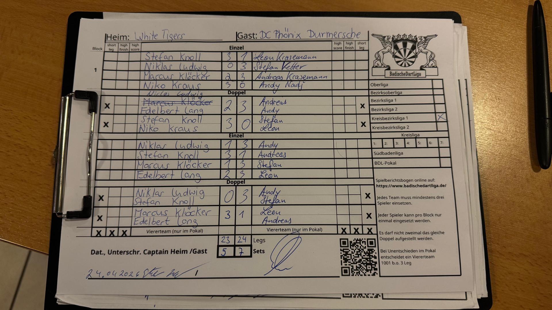 | Ergebnis: | 23 : 24 | - Legs | ||||||
