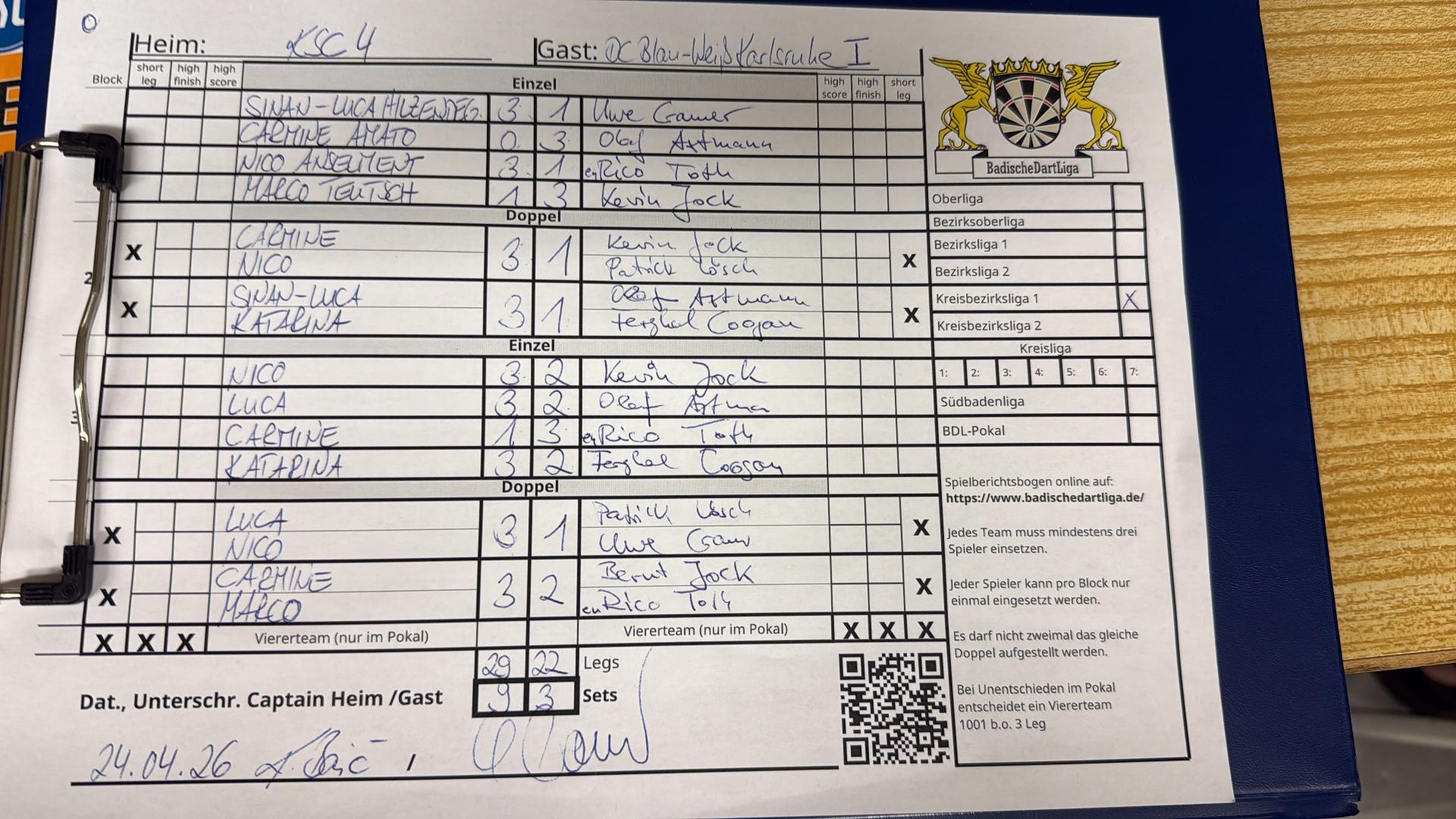| Ergebnis: | 29 : 22 | - Legs | ||||||