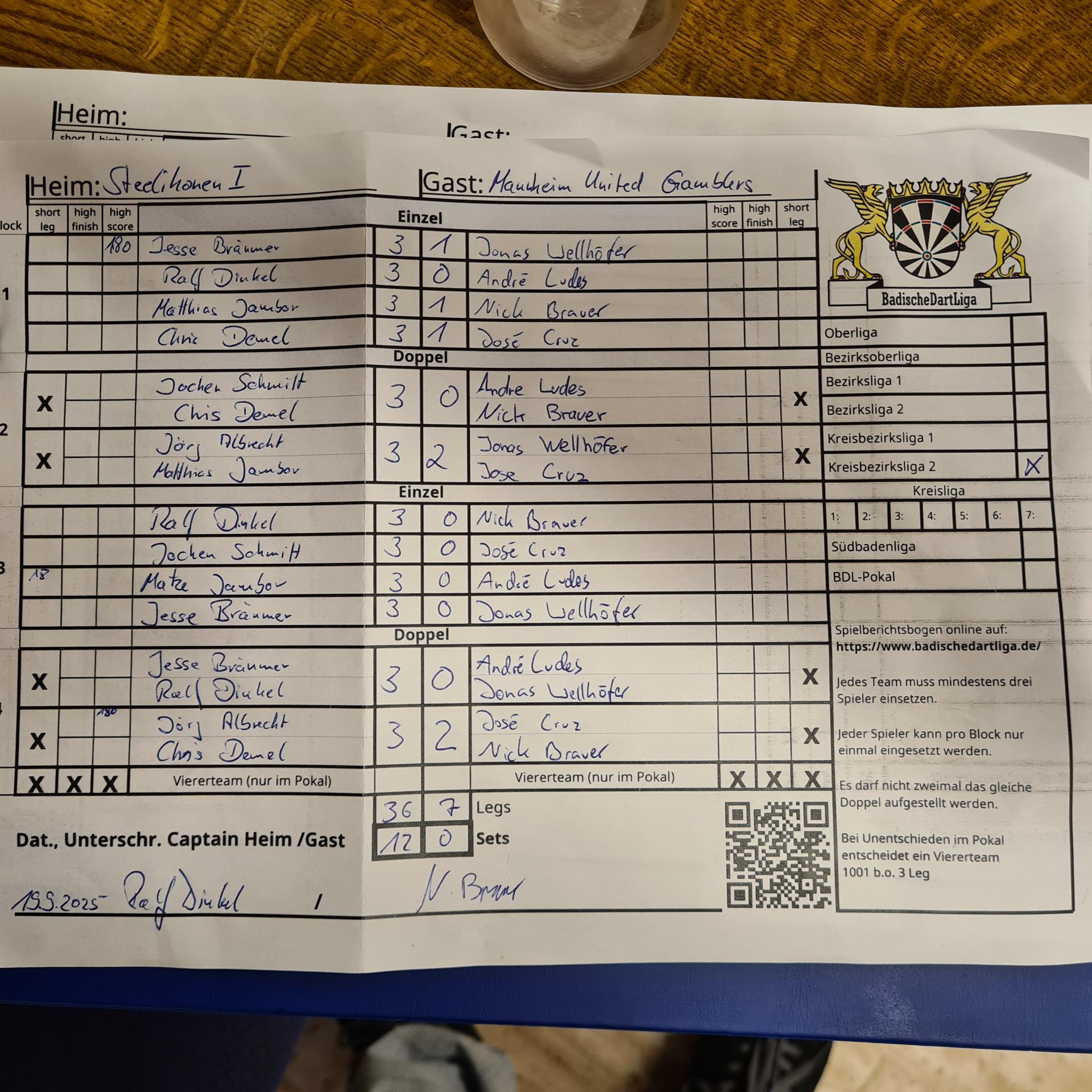 Ergebnis: | 36 : 7 | - Legs | ||||||