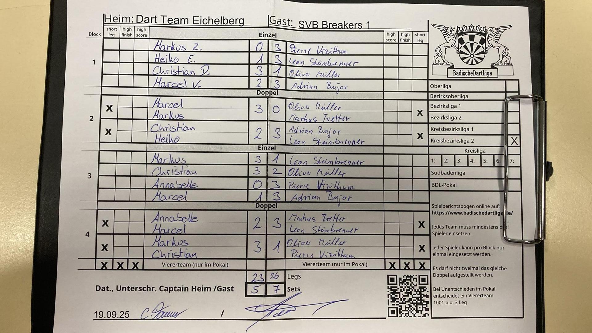 HEIM: | Dart Team Eichelberg | GAST: | SVB Breakers 1 | |||||