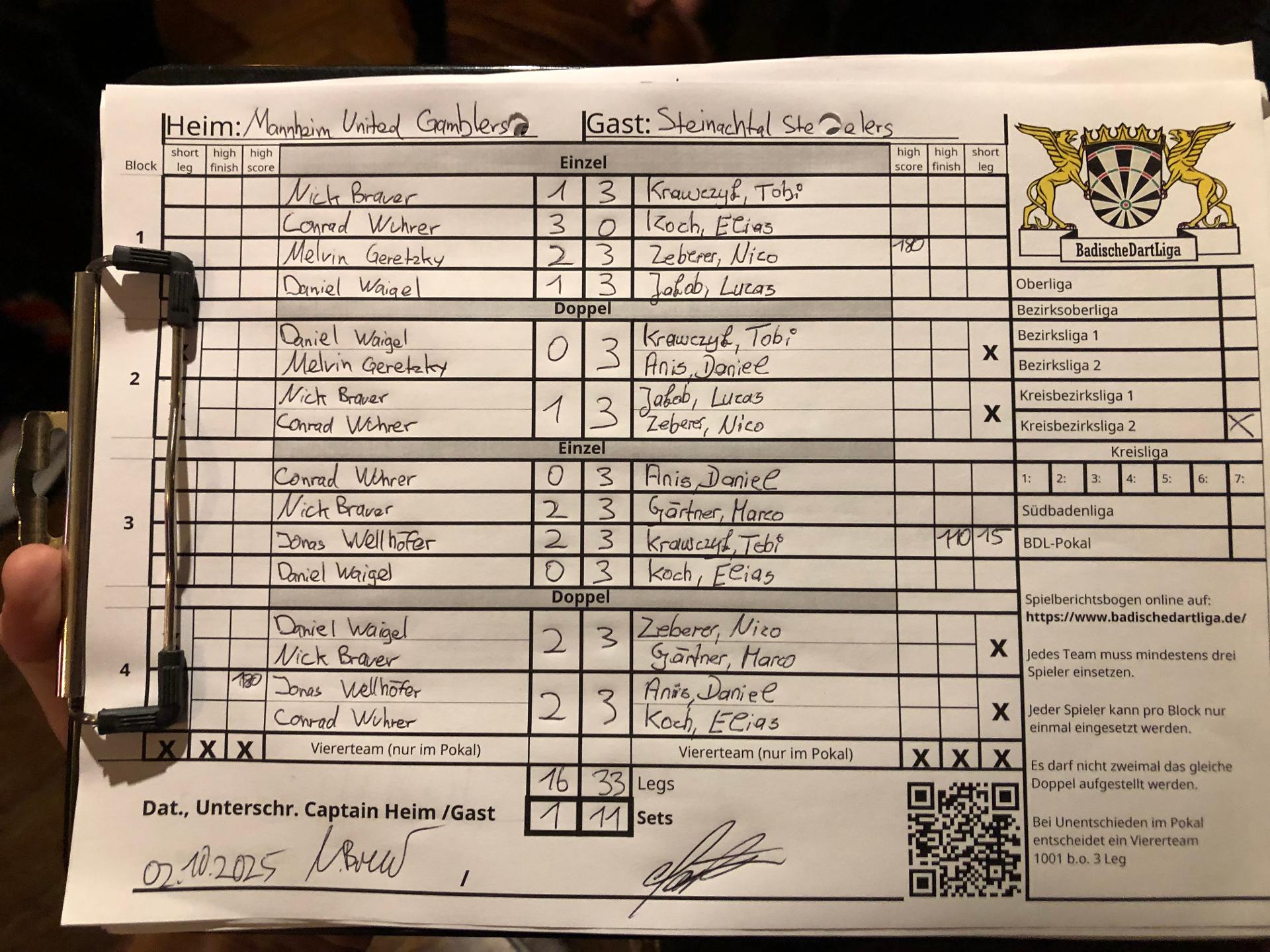 Ergebnis: | 16 : 33 | - Legs | ||||||