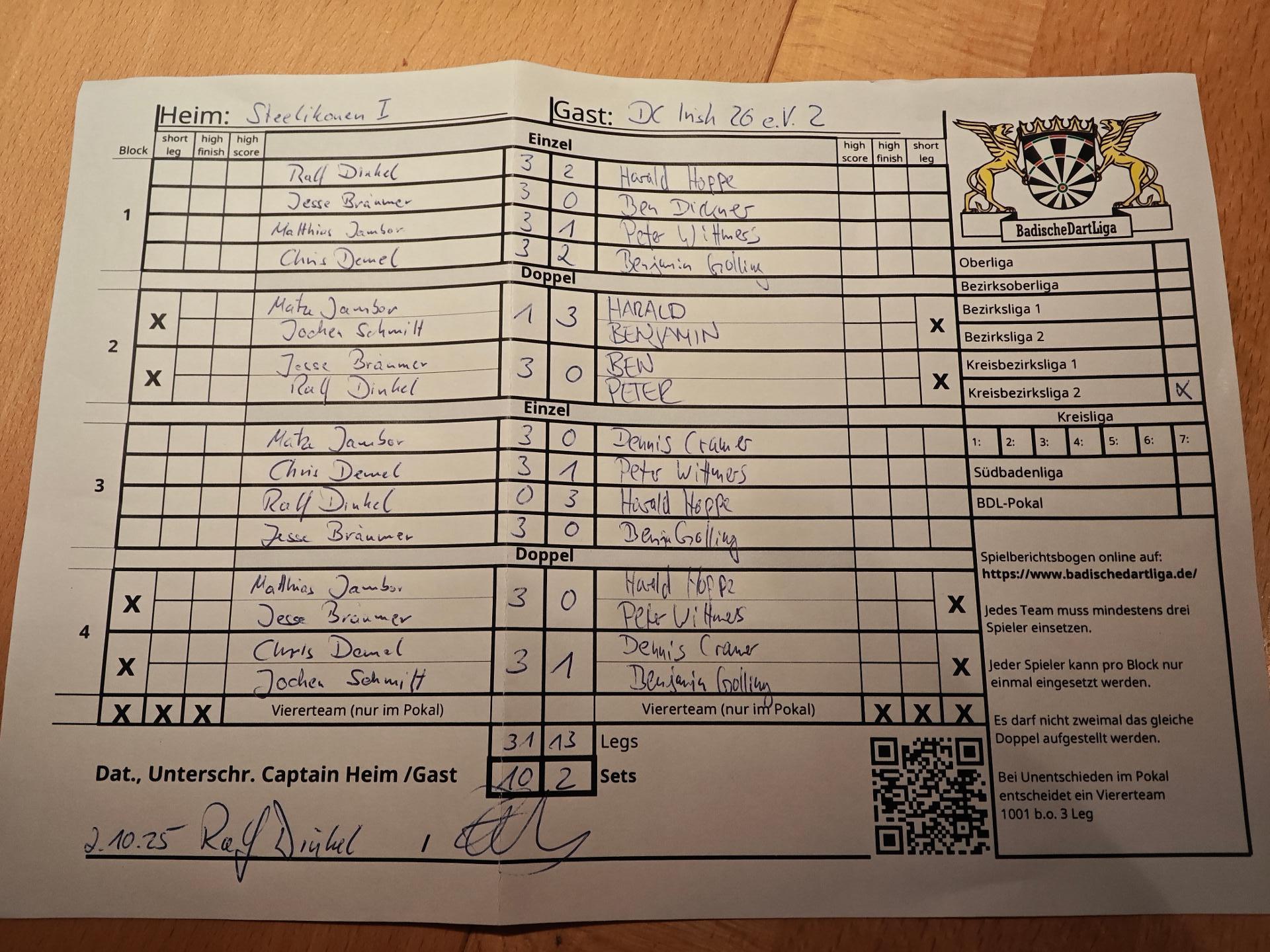 Ergebnis: | 31 : 13 | - Legs | ||||||