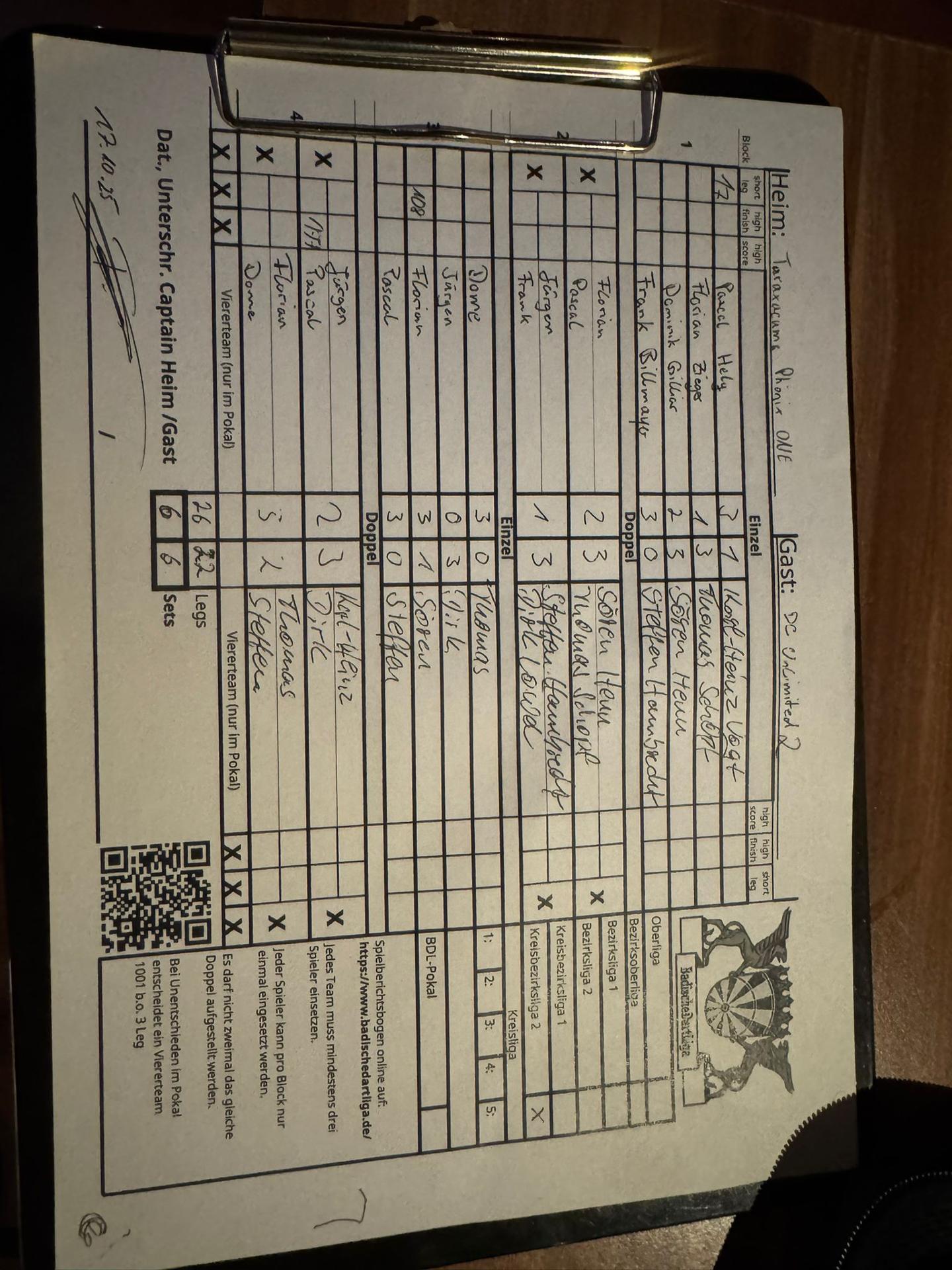 | Ergebnis: | 26 : 22 | - Legs | ||||||