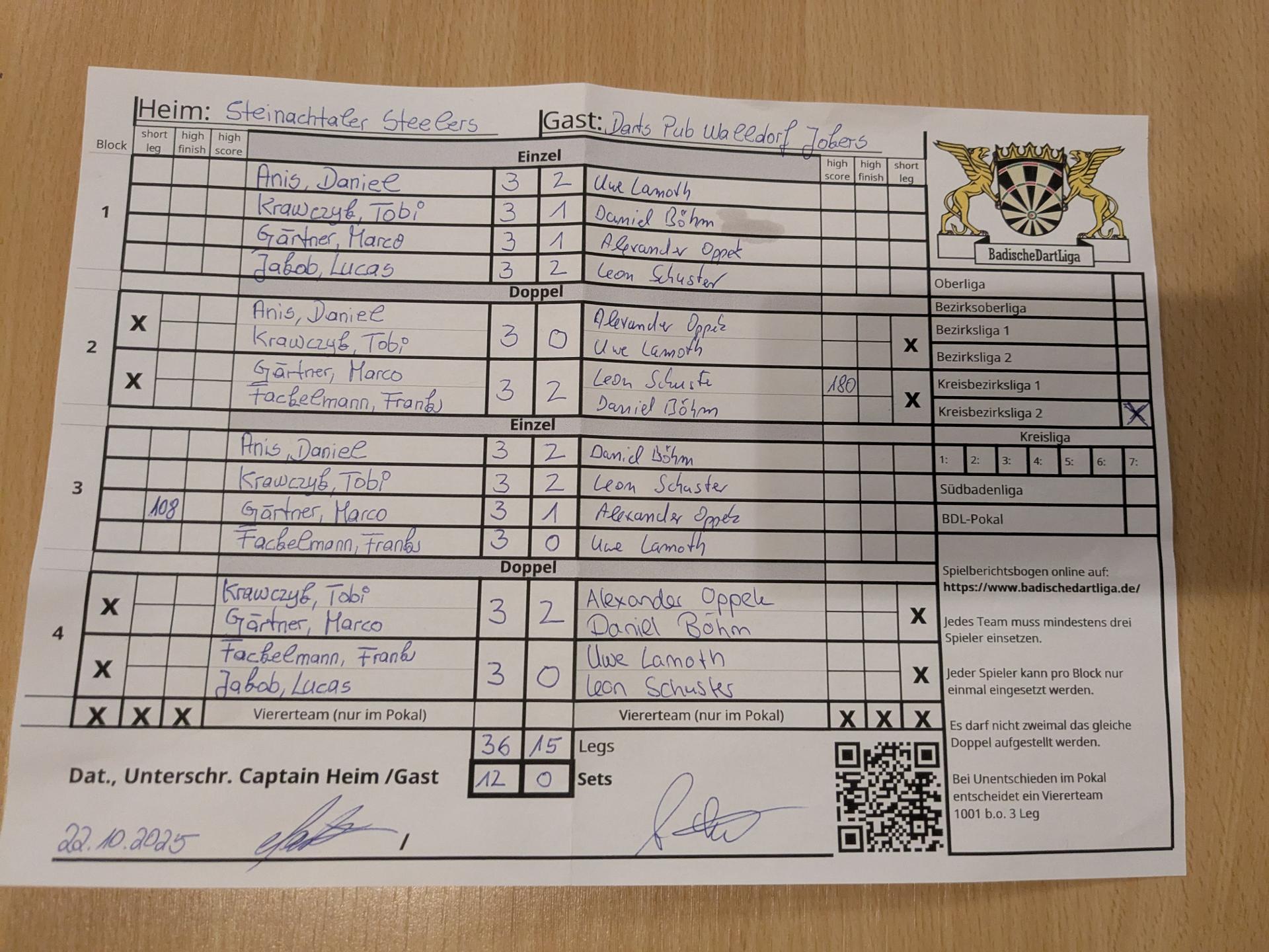 | HEIM: | Steinachtaler Steelers | GAST: | Darts Pub Walldorf Jokers | |||||