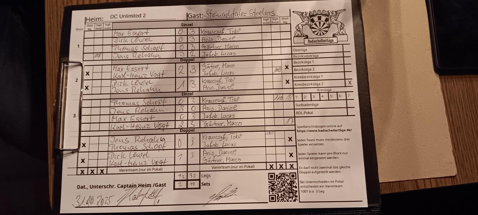 | Ergebnis: | 12 : 32 | - Legs | ||||||