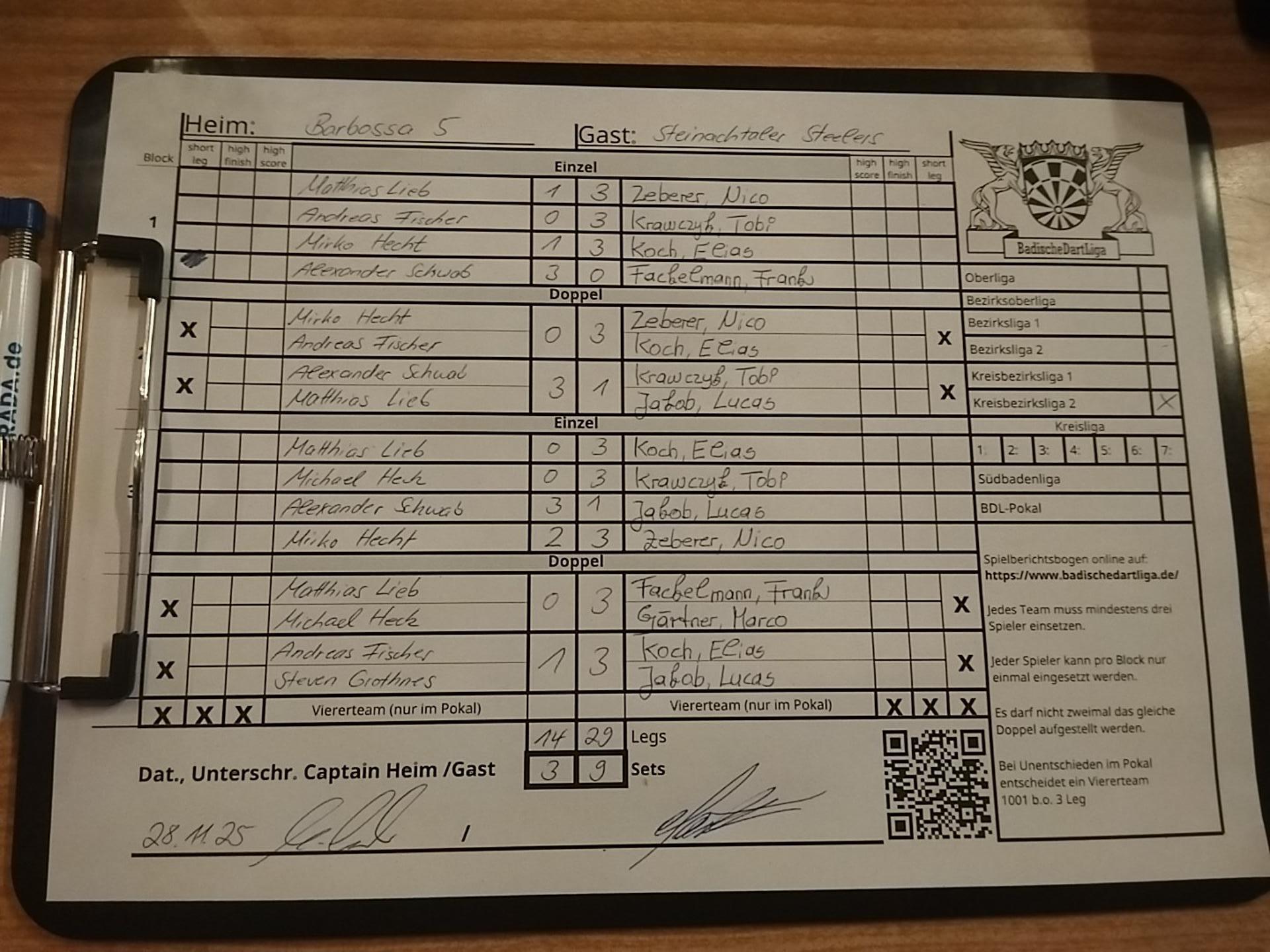 | Ergebnis: | 14 : 29 | - Legs | ||||||