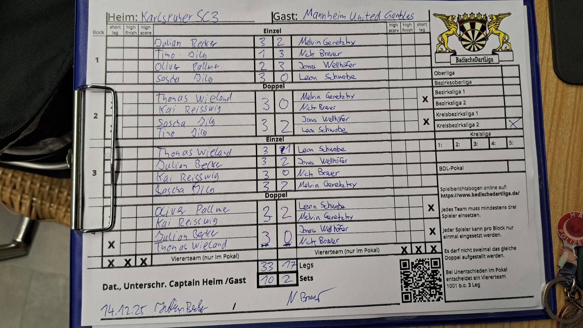 | Ergebnis: | 33 : 17 | - Legs | ||||||