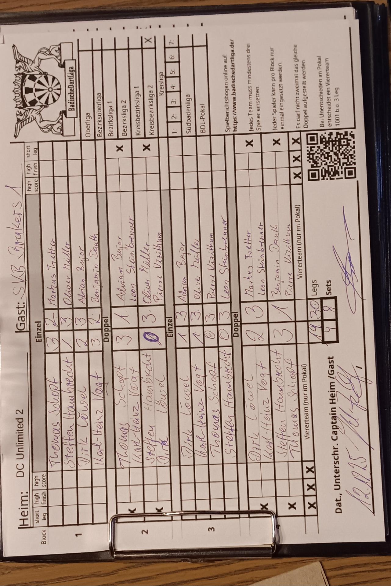 | Ergebnis: | 19 : 30 | - Legs | ||||||