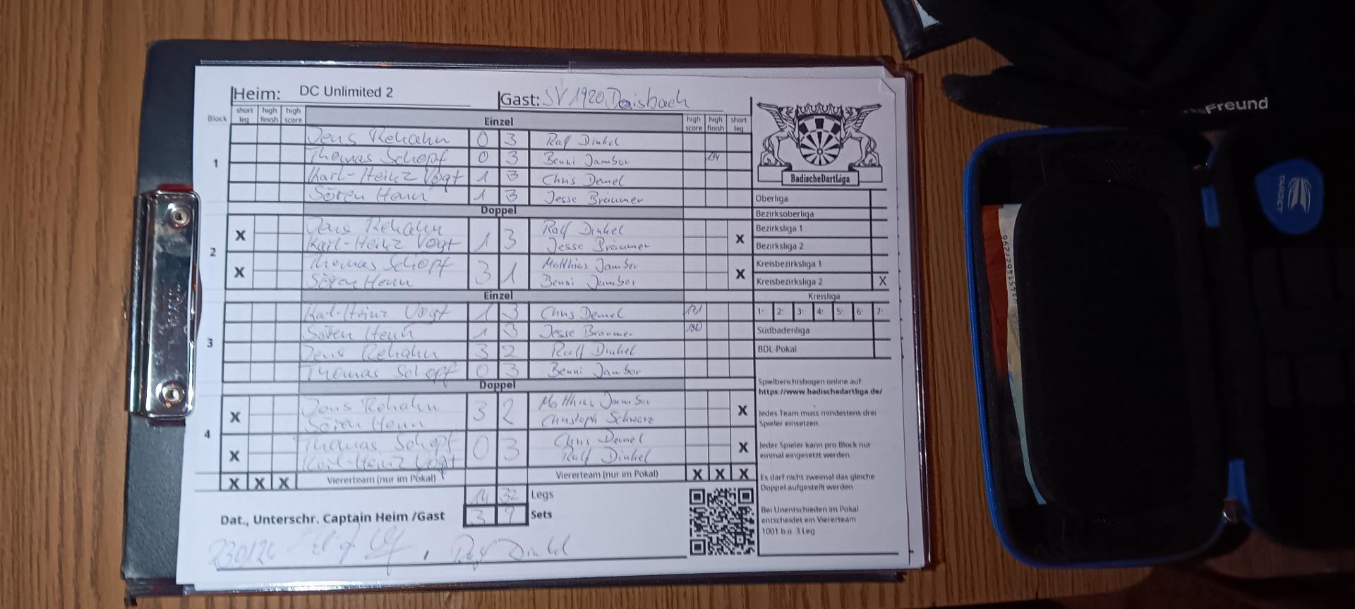 | Ergebnis: | 14 : 32 | - Legs | ||||||