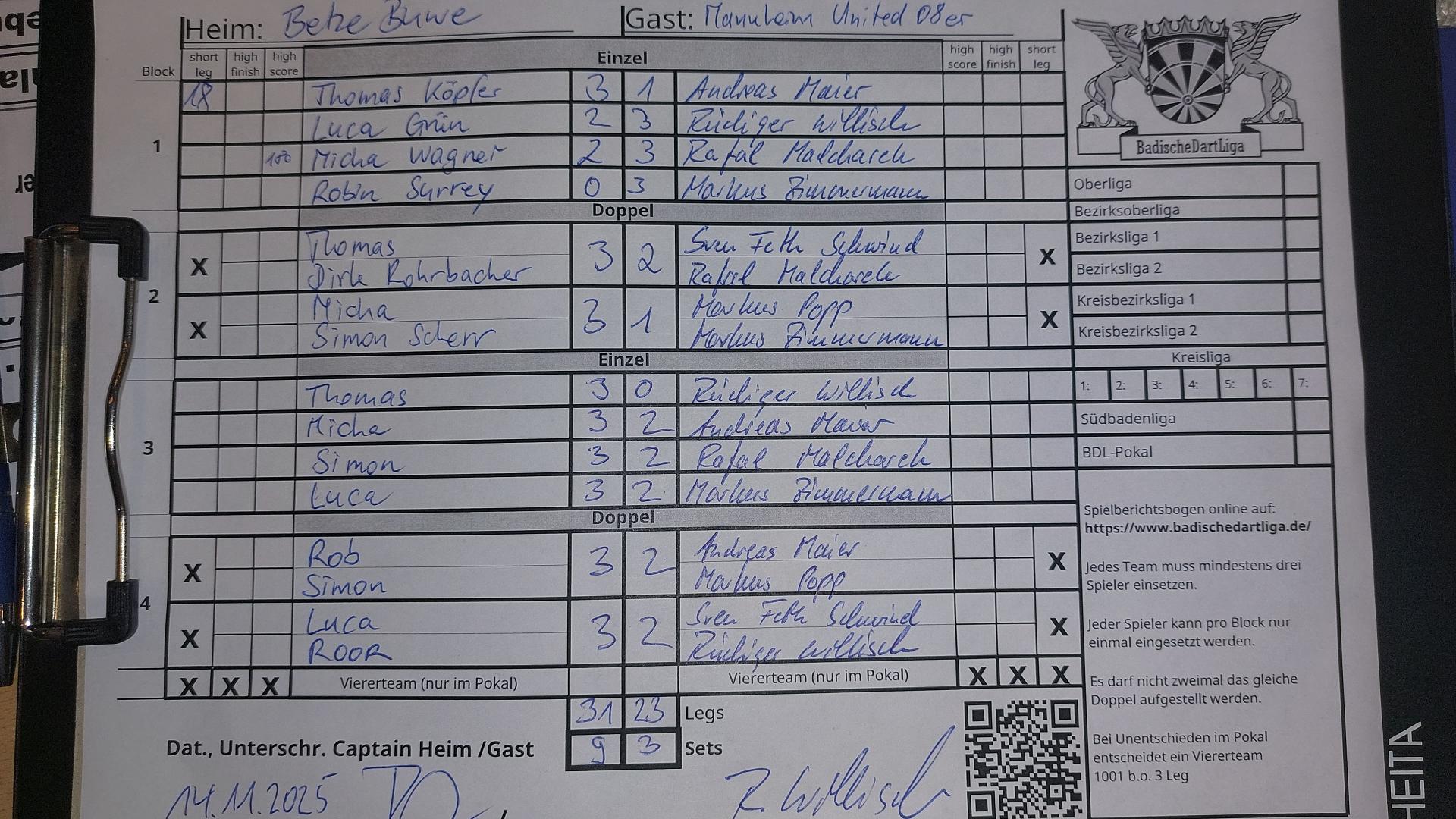 | Ergebnis: | 31 : 23 | - Legs | ||||||