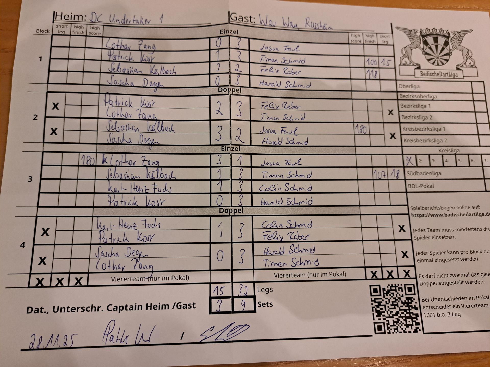 | Ergebnis: | 15 : 32 | - Legs | ||||||