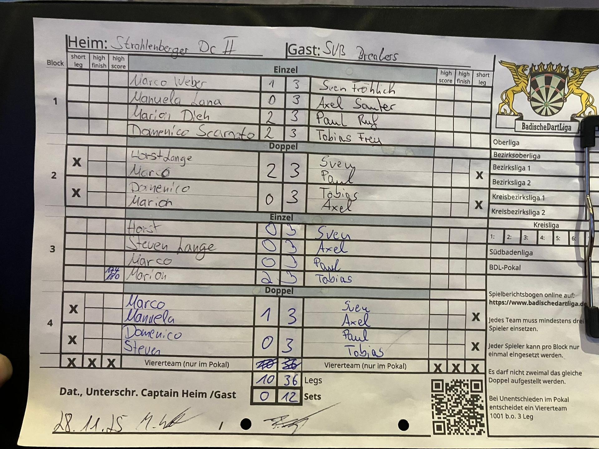| Ergebnis: | 10 : 36 | - Legs | ||||||