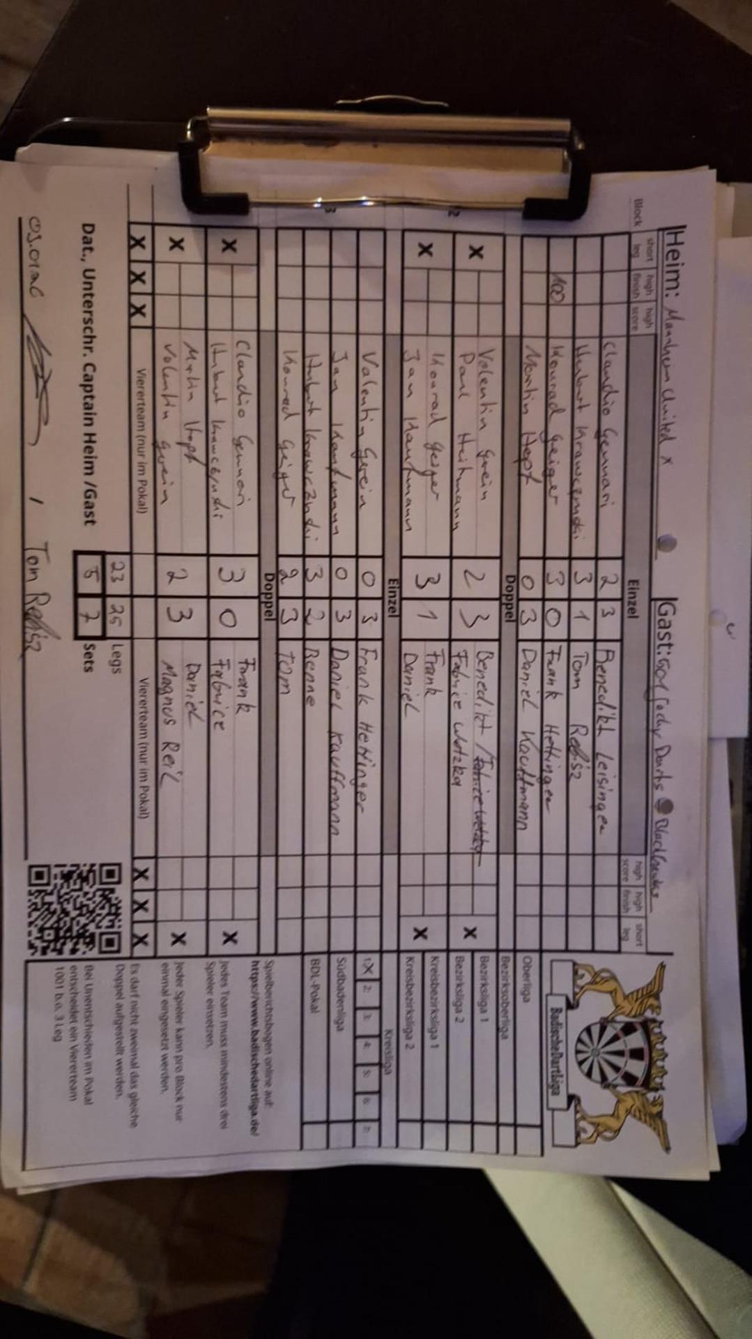 | Ergebnis: | 23 : 25 | - Legs | ||||||