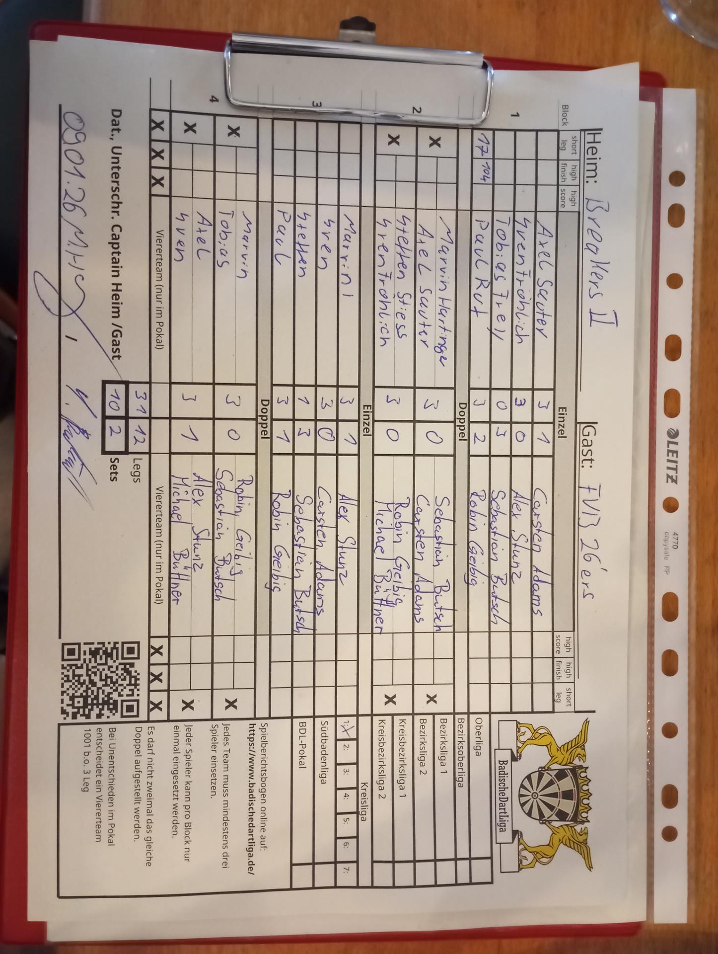 | Ergebnis: | 31 : 12 | - Legs | ||||||