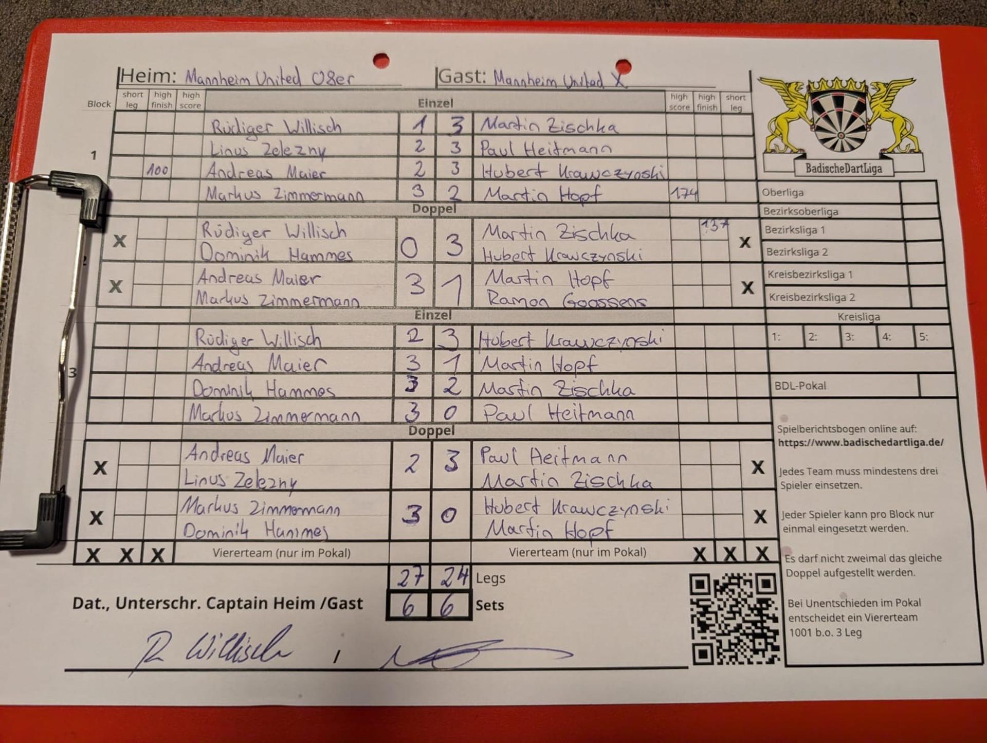 | Ergebnis: | 27 : 24 | - Legs | ||||||