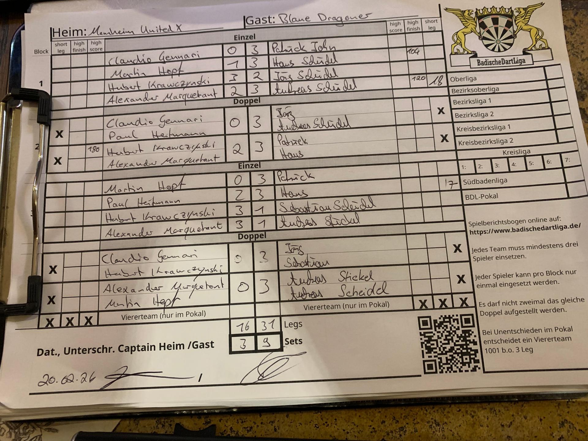| Ergebnis: | 16 : 31 | - Legs | ||||||