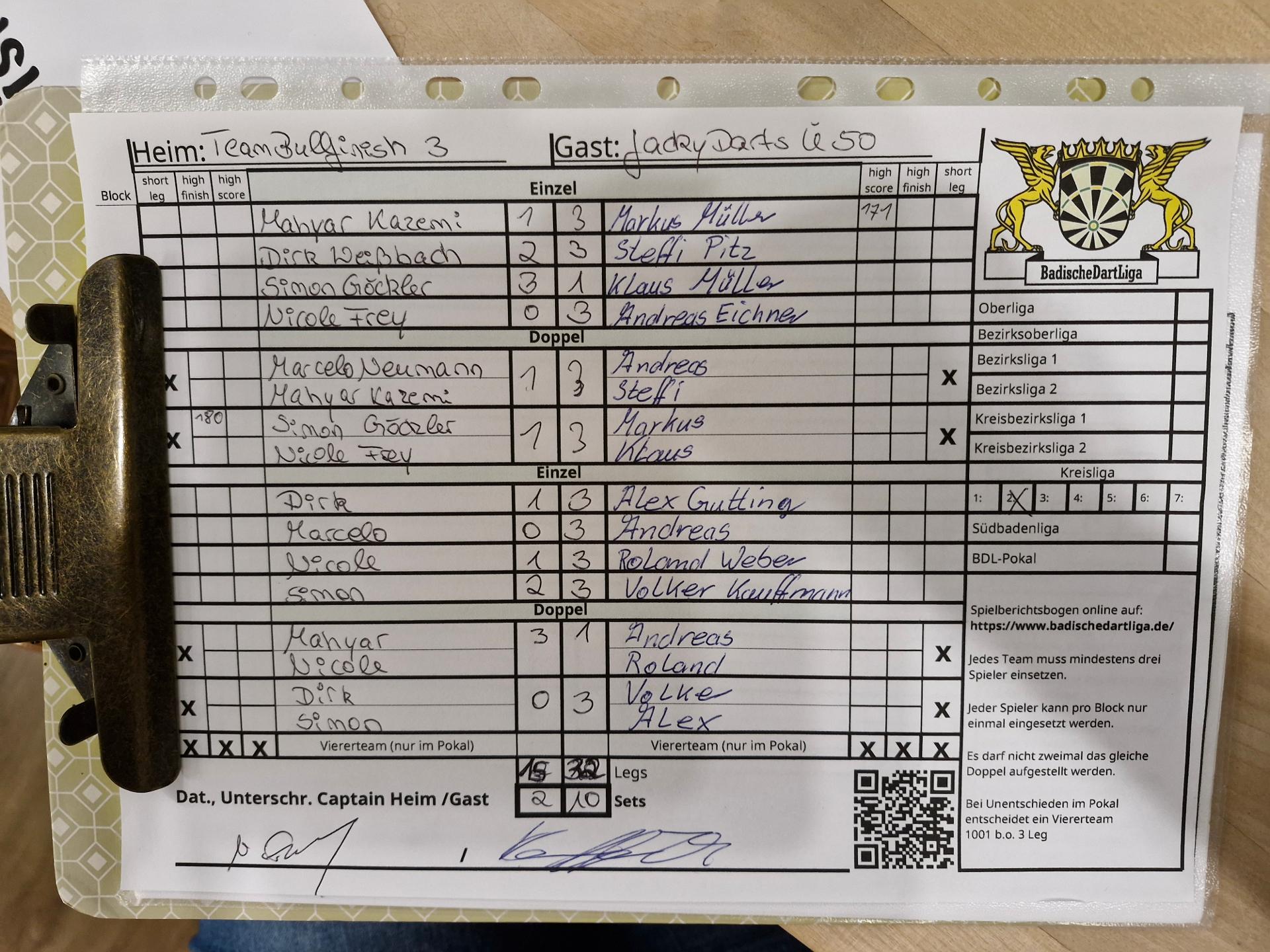 HEIM: | Team Bullfinish 3 | GAST: | 501 Jacky Darts Ü50 | |||||