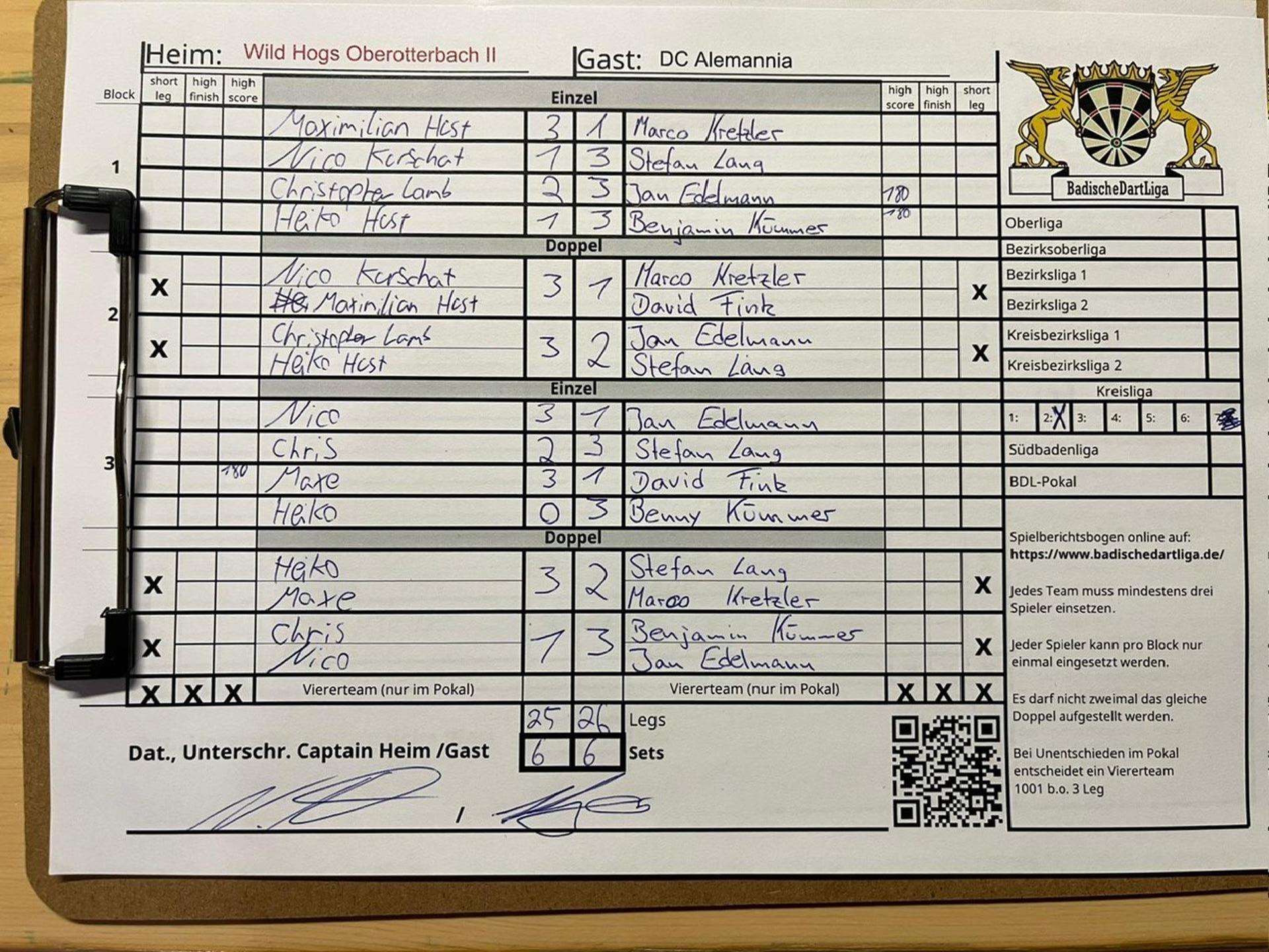 | Ergebnis: | 25 : 26 | - Legs | ||||||