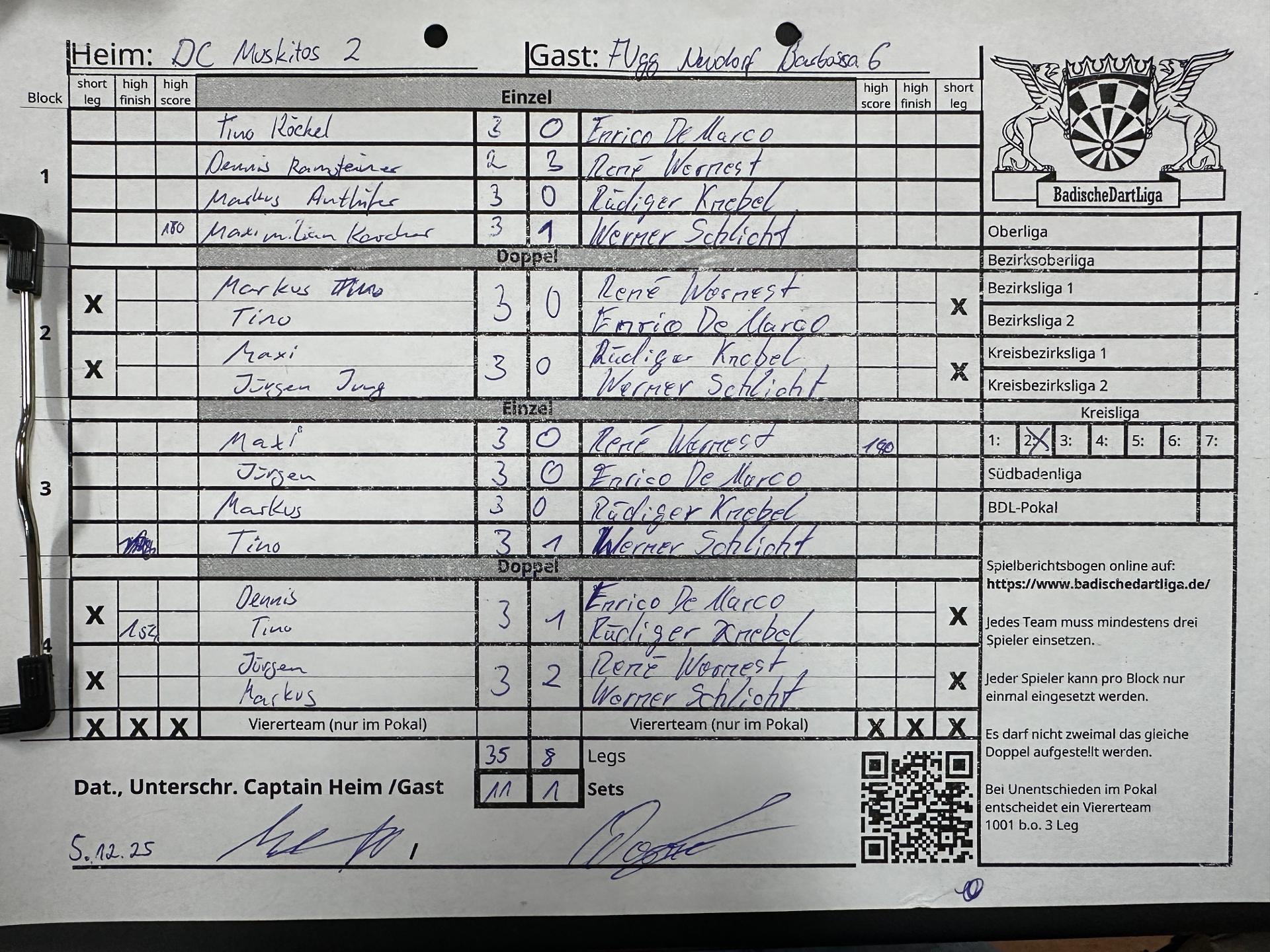 | Ergebnis: | 35 : 8 | - Legs | ||||||