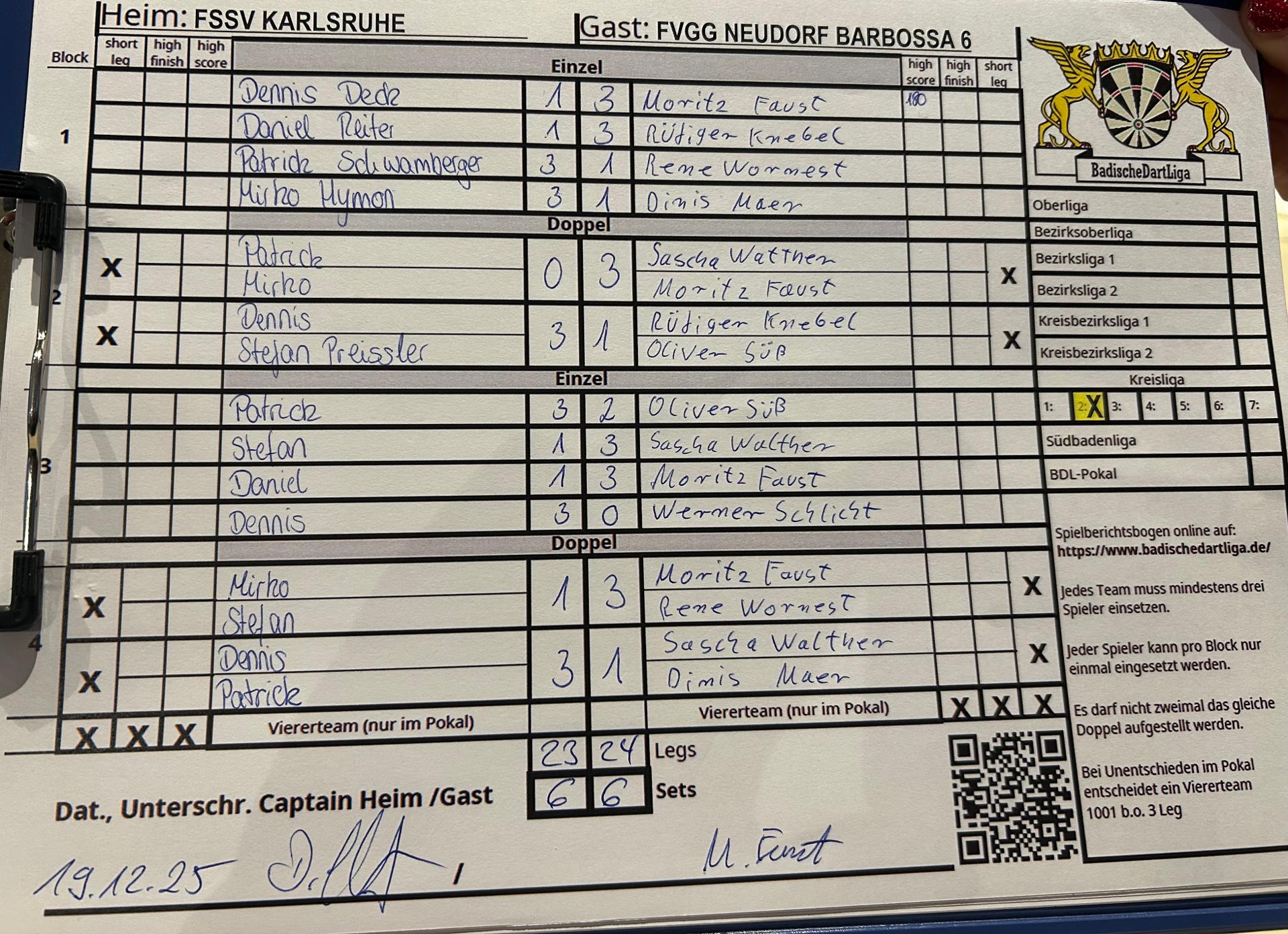 | Ergebnis: | 23 : 24 | - Legs | ||||||