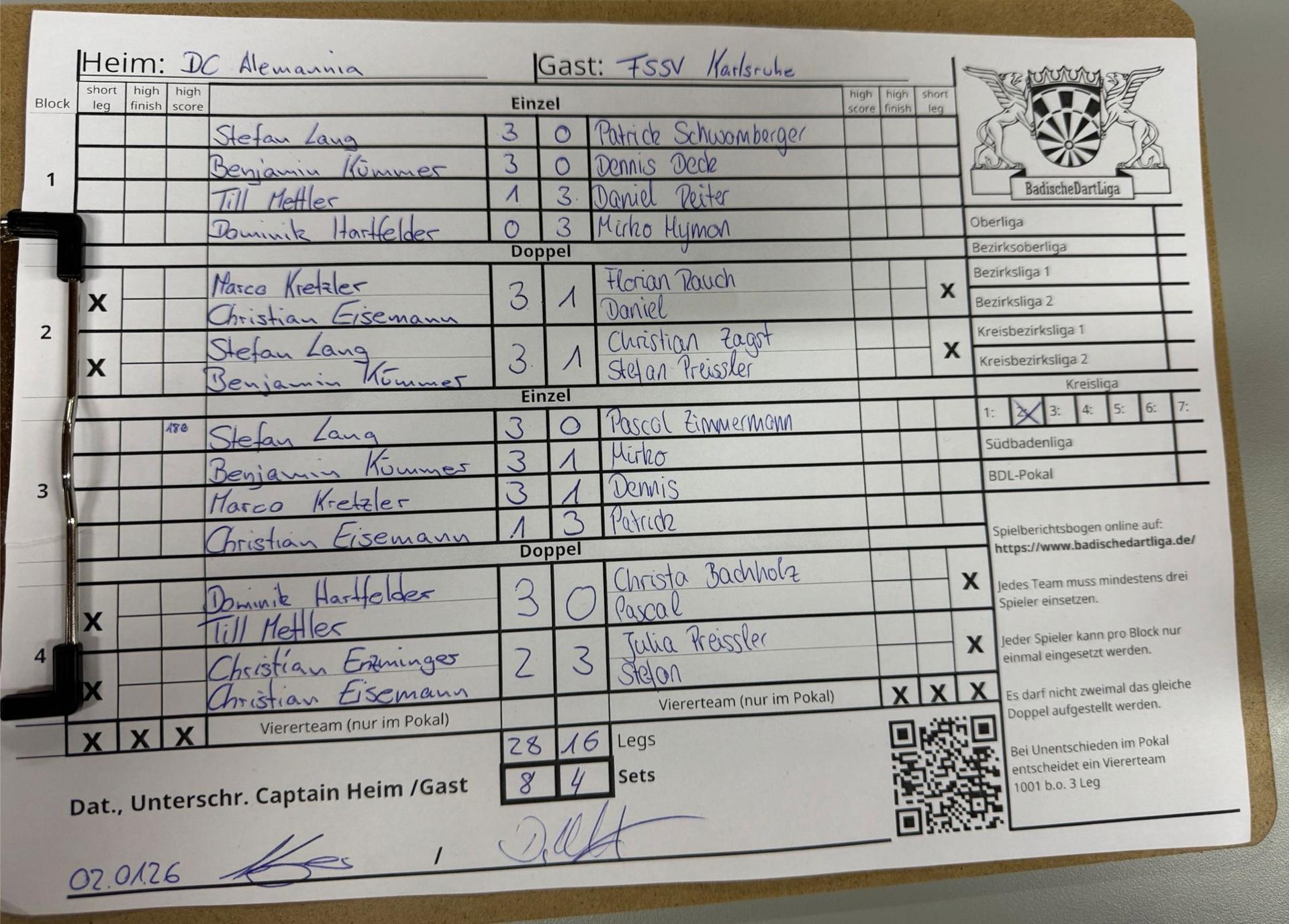 | Ergebnis: | 28 : 16 | - Legs | ||||||