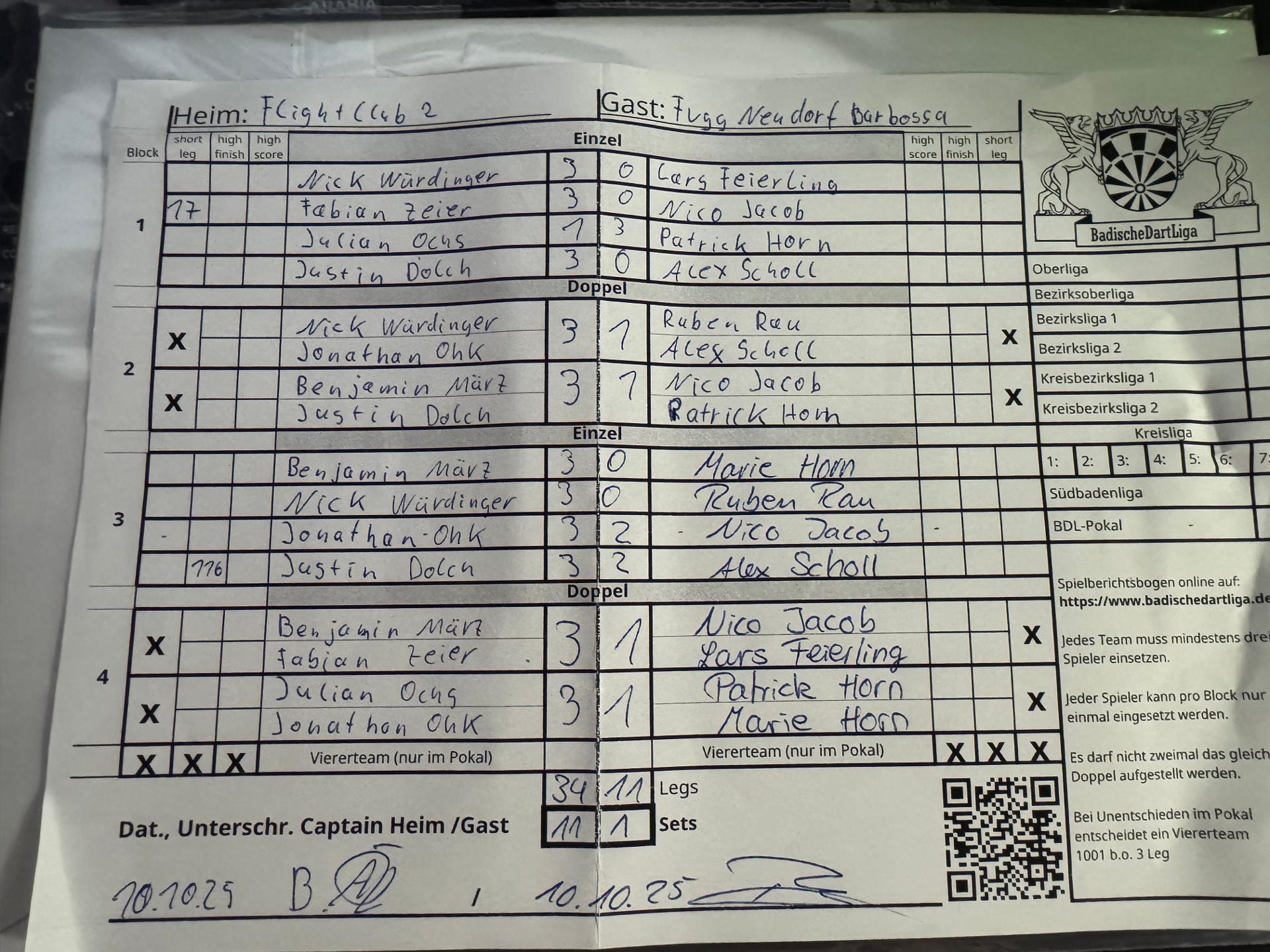 | Ergebnis: | 34 : 11 | - Legs | ||||||