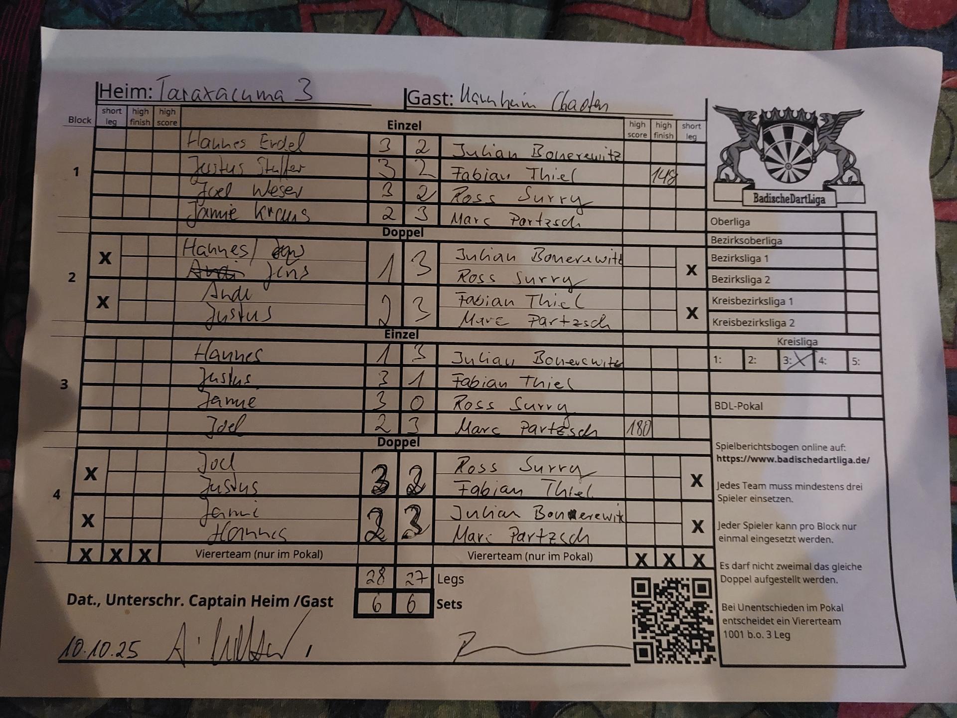 | Ergebnis: | 28 : 27 | - Legs | ||||||
