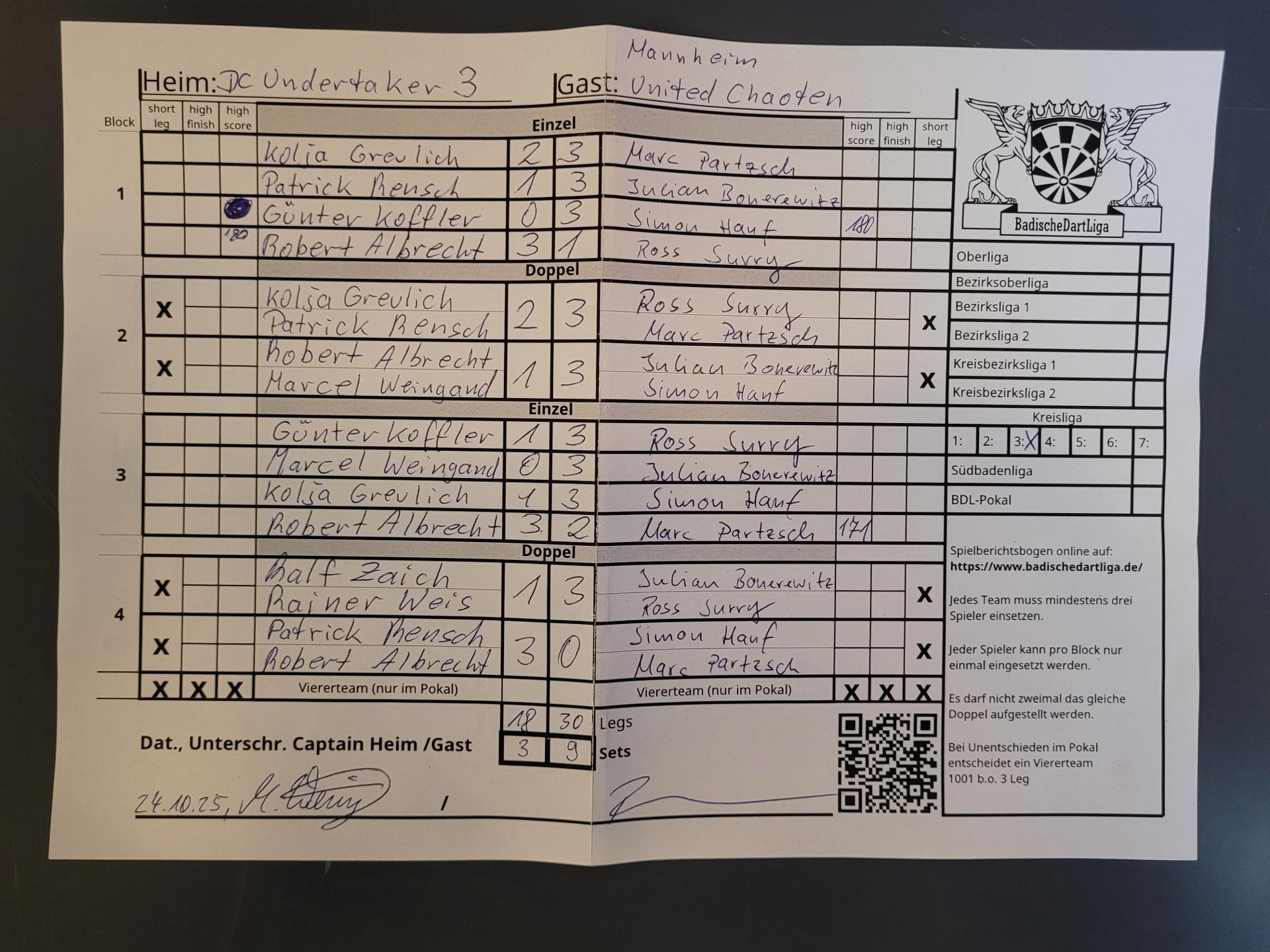 | Ergebnis: | 18 : 30 | - Legs | ||||||