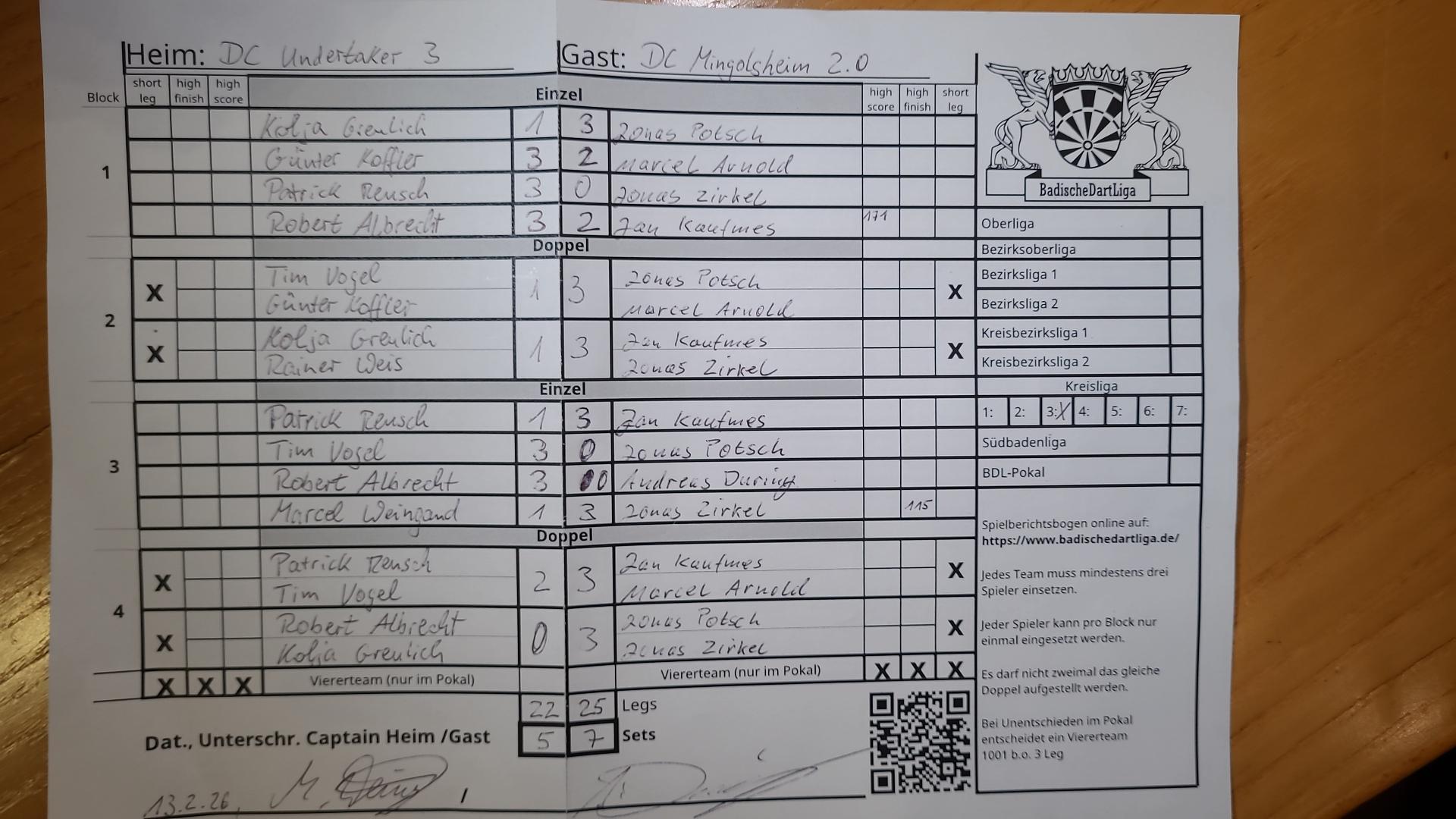 | Ergebnis: | 22 : 25 | - Legs | ||||||