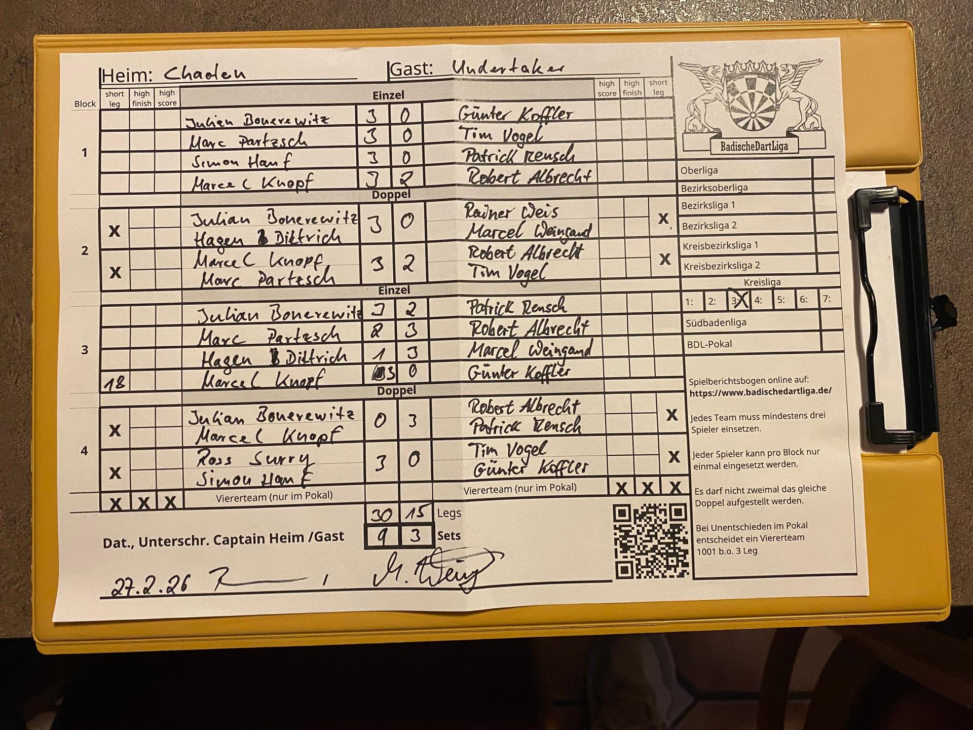 | Ergebnis: | 30 : 15 | - Legs | ||||||