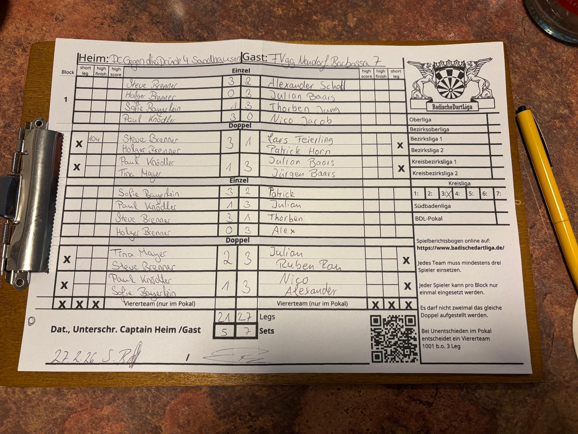 | Ergebnis: | 21 : 27 | - Legs | ||||||