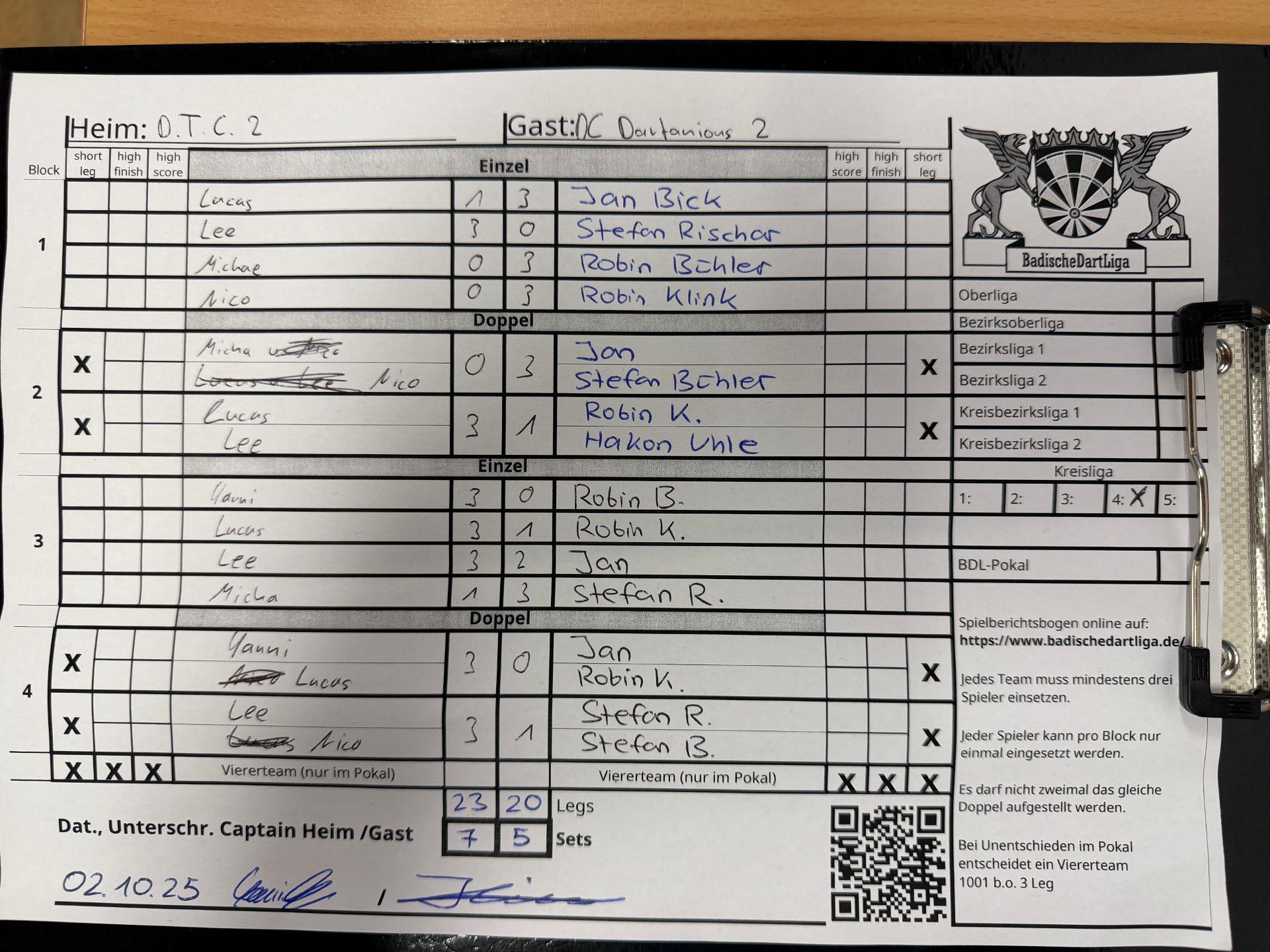 Ergebnis: | 23 : 20 | - Legs | ||||||