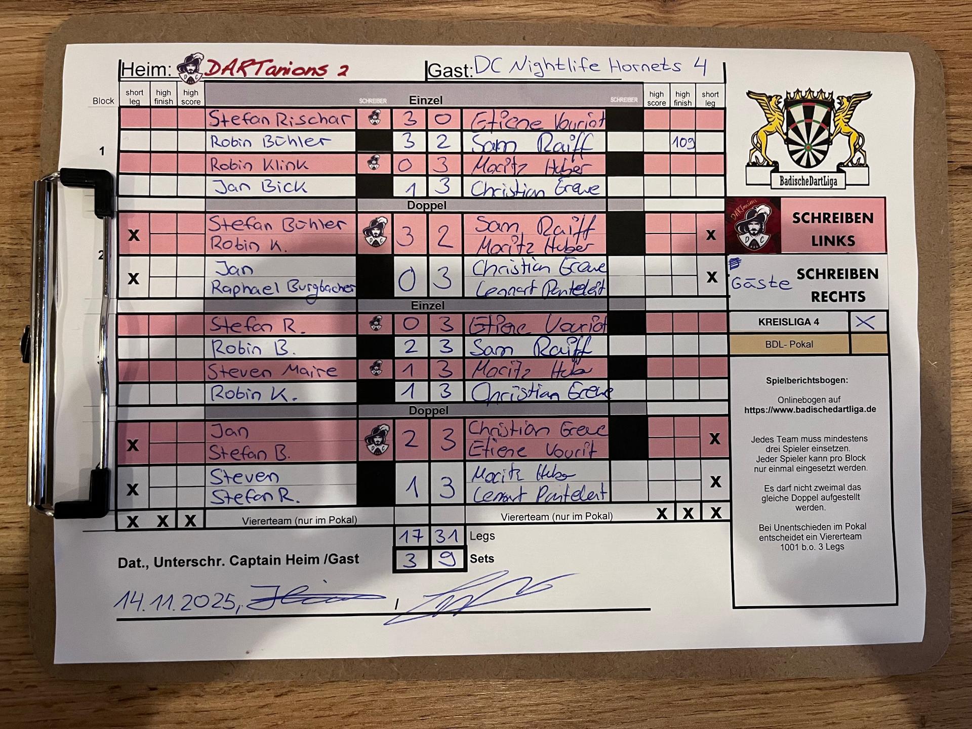 | HEIM: | DC DARTanions 2 | GAST: | DC Nightlife Hornets 4 | |||||