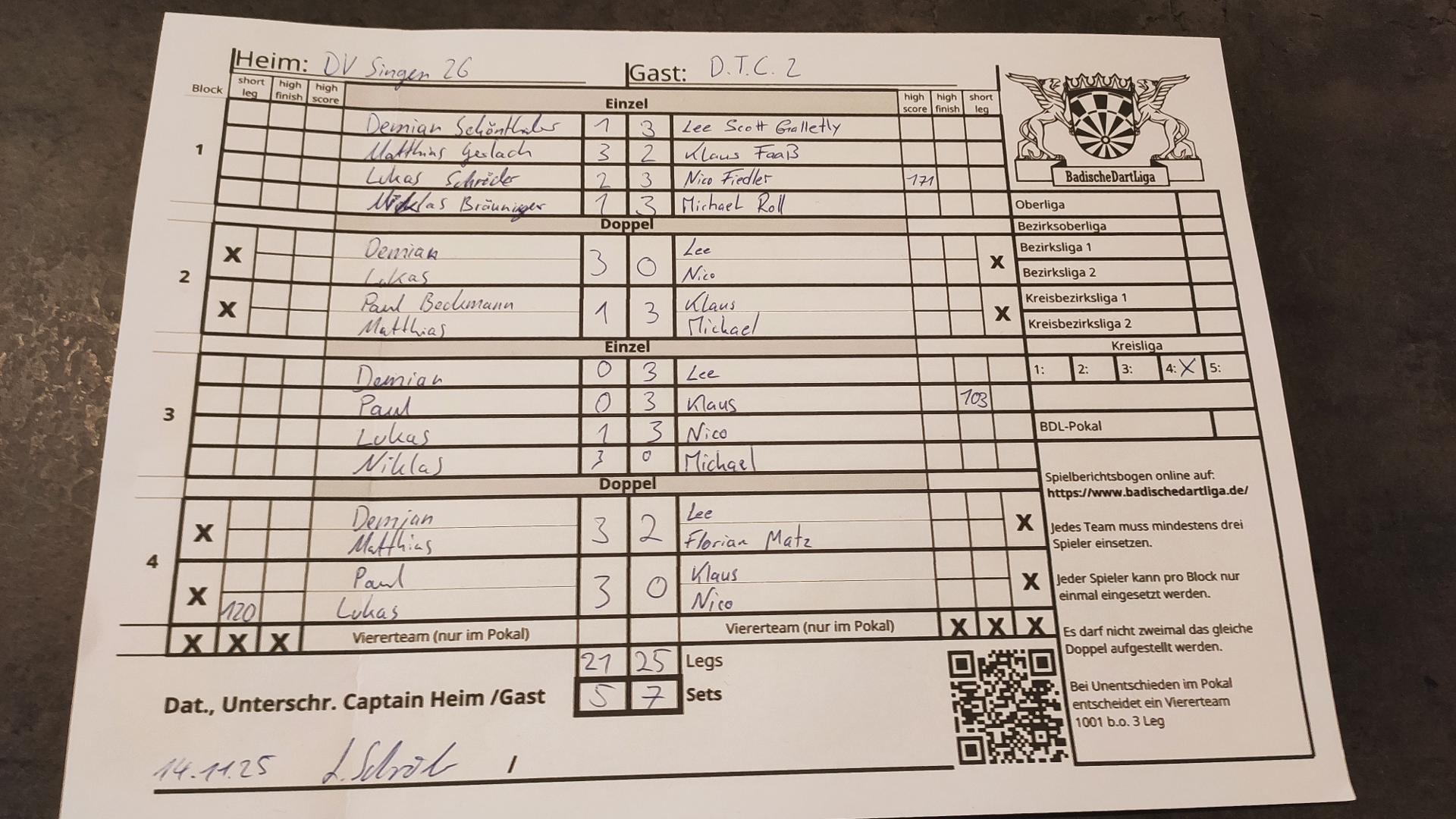 | Ergebnis: | 21 : 25 | - Legs | ||||||