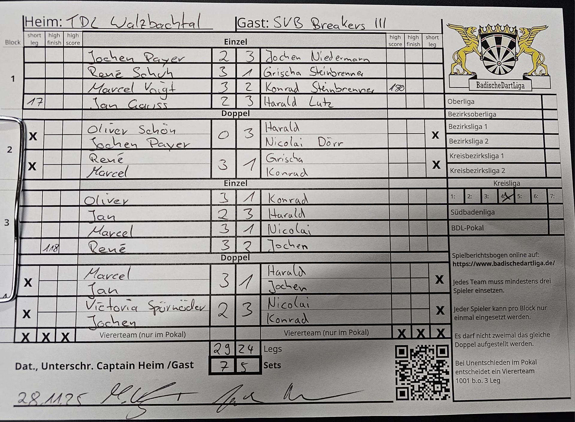 | Ergebnis: | 29 : 24 | - Legs | ||||||