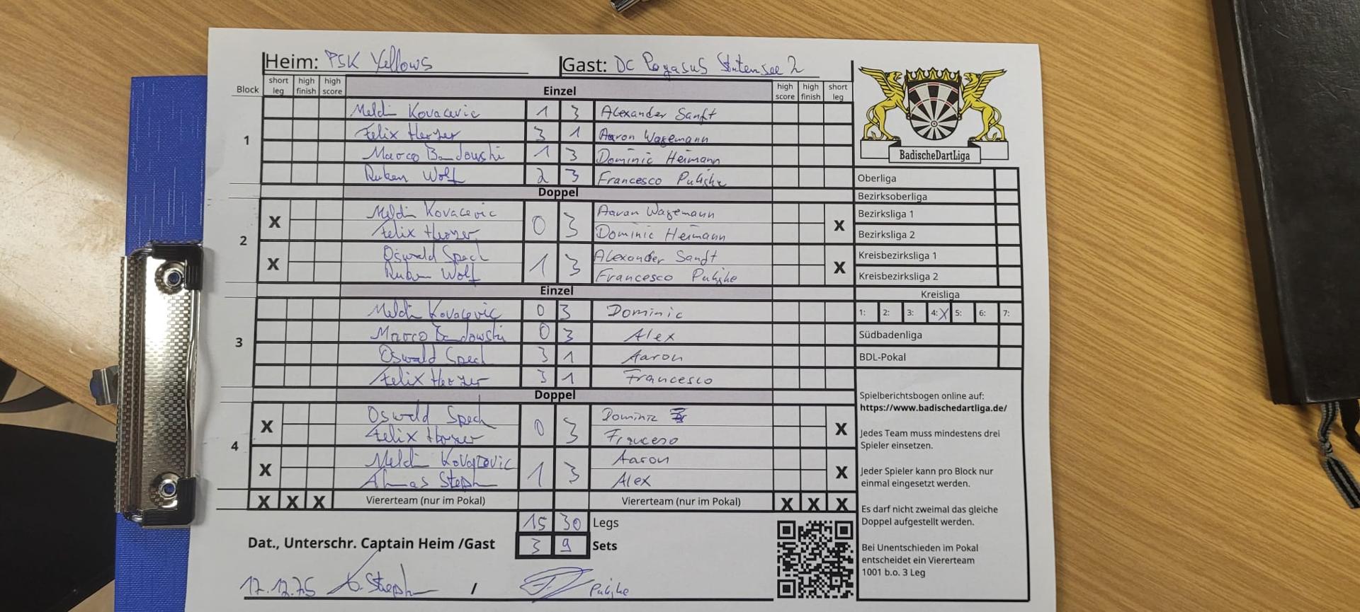 | Ergebnis: | 15 : 30 | - Legs | ||||||